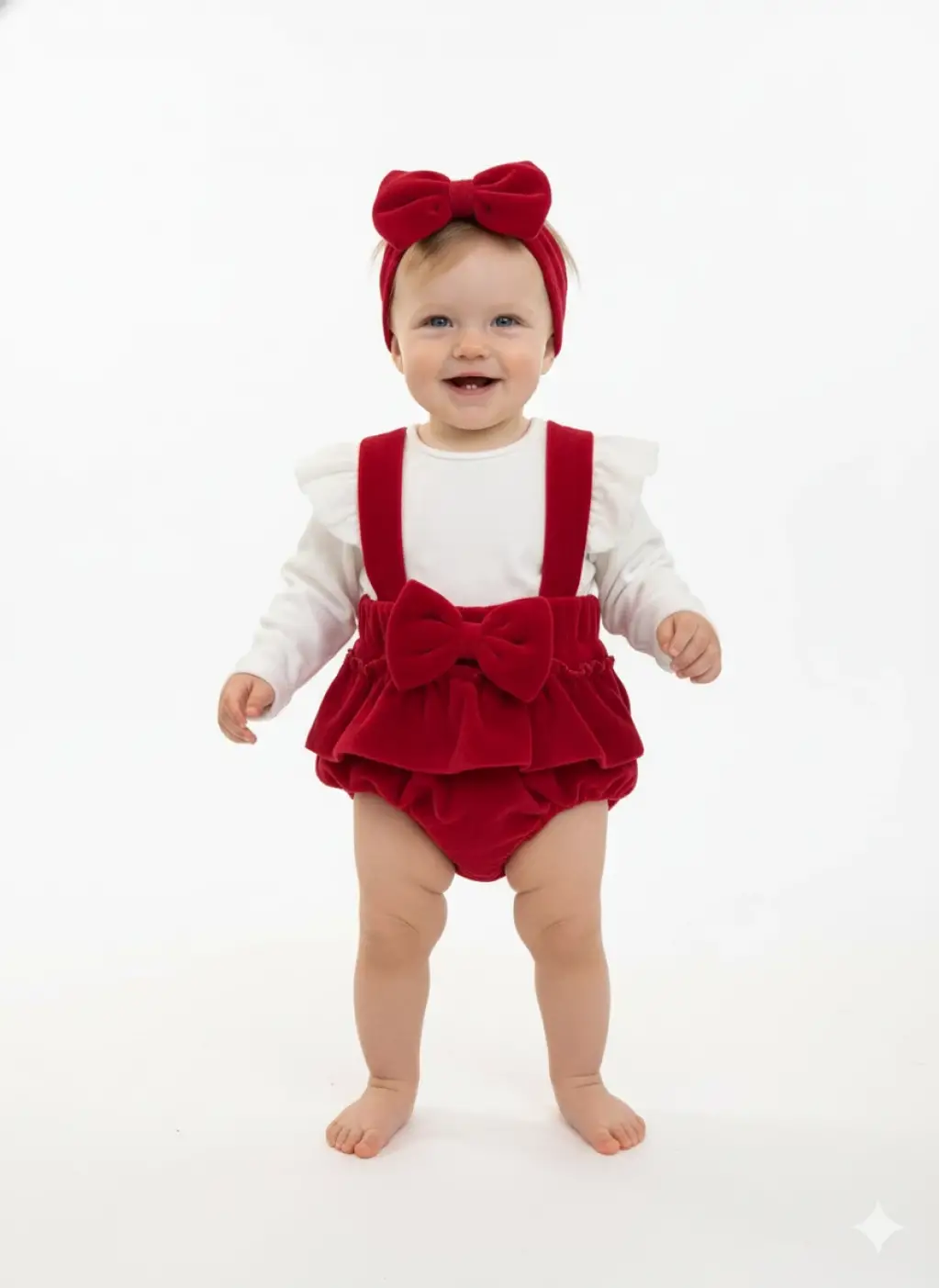 • 0-12 Ay Bandanalı Kırmızı Salopet Badili Takım