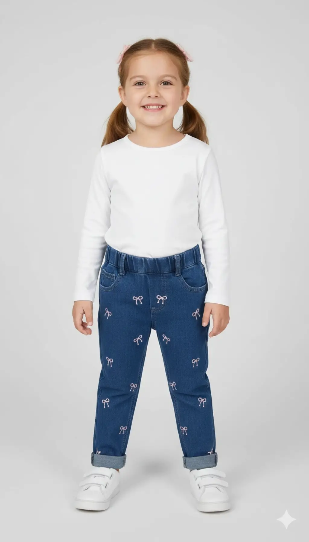 1-4 Yaş Kurdele İşlemeli Kot Pantolon