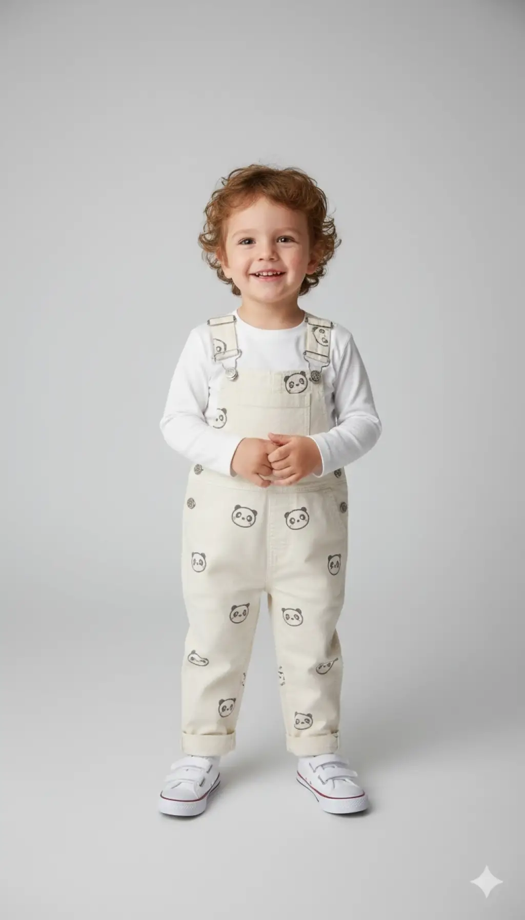 1-4 Yaş Panda Baskılı Ekru Salopet