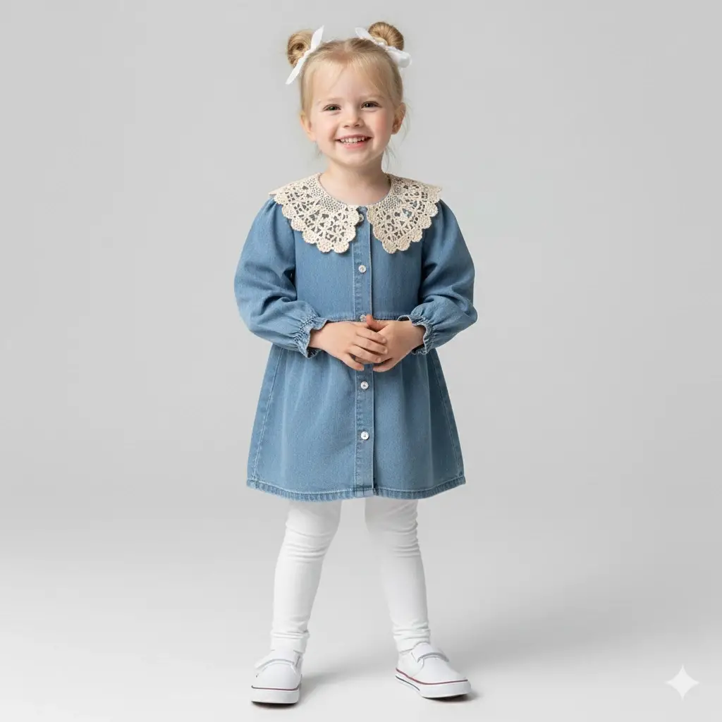 1-5 Yaş Dantel Hazır Yaka Kot Elbise