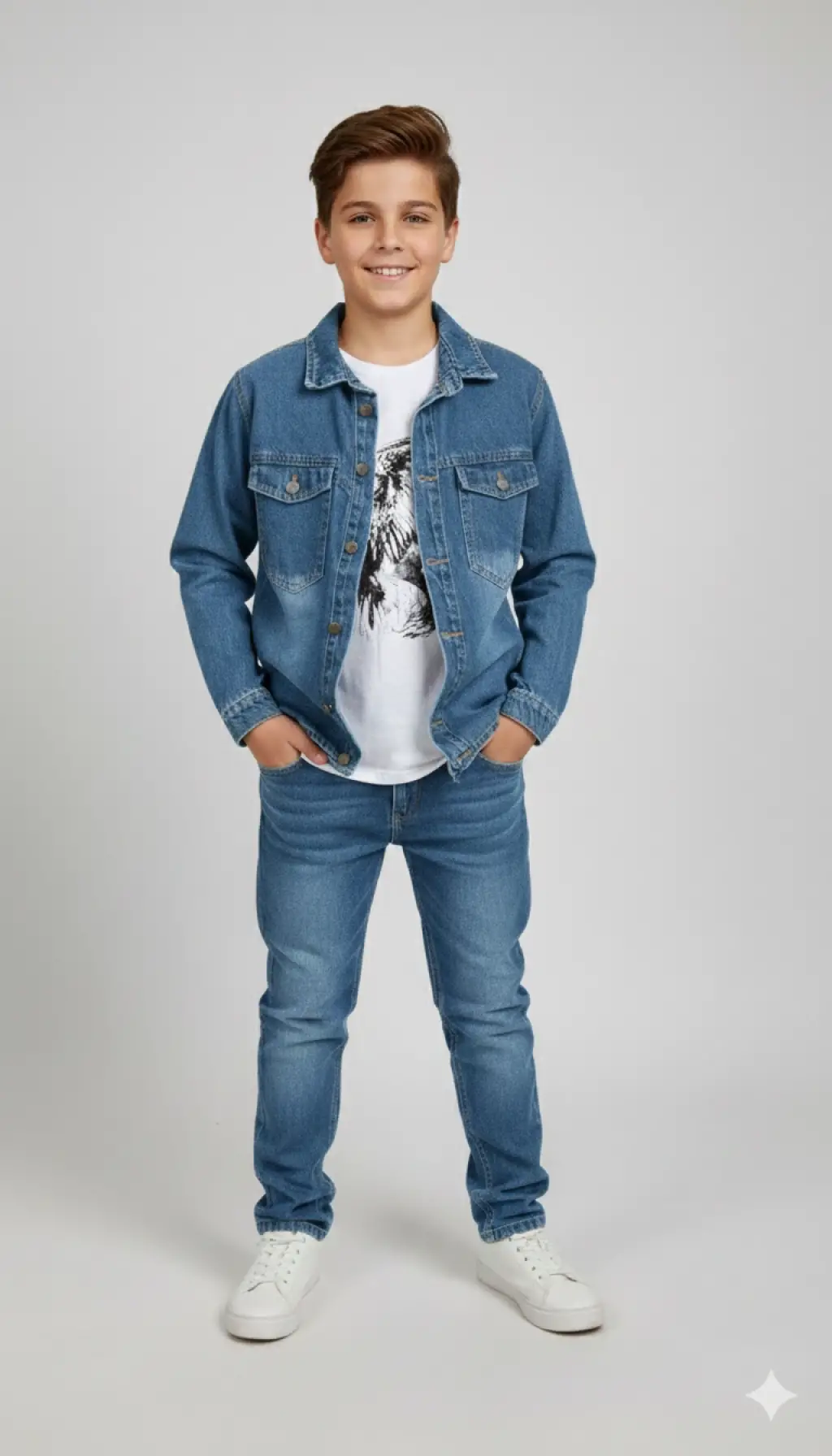 10-13 Yaş Açık Kot Gömlekli 3lü Takım