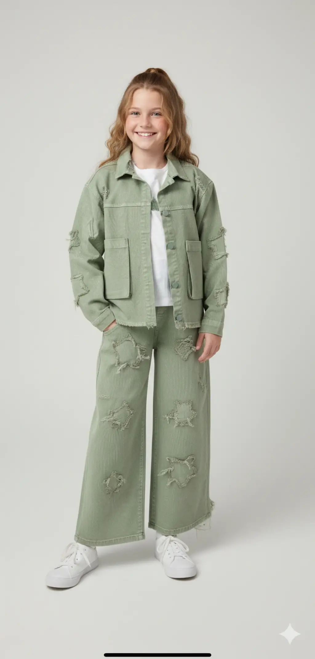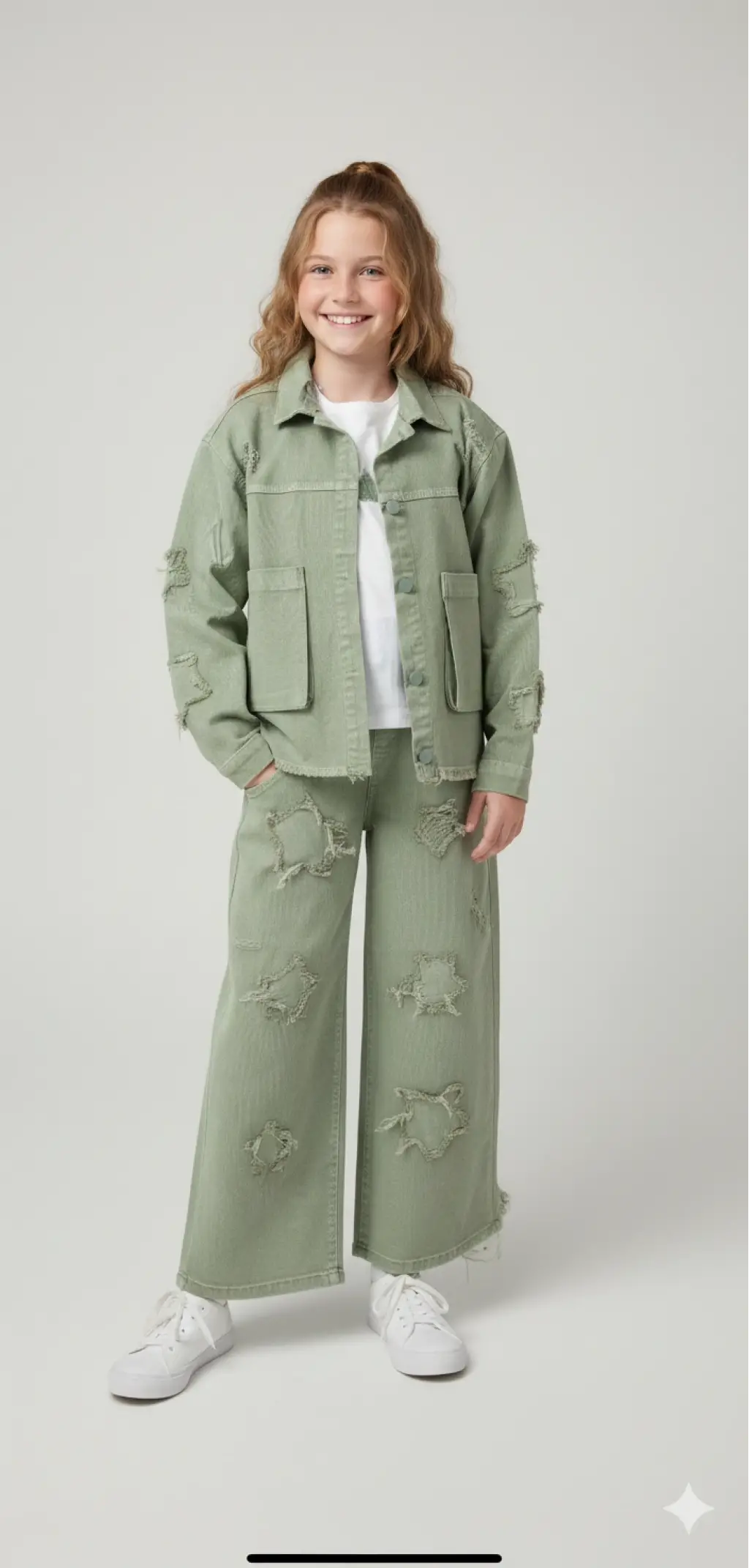 10-13 Yaş Yeşil Düğmeli Ceketli 3lü Takım