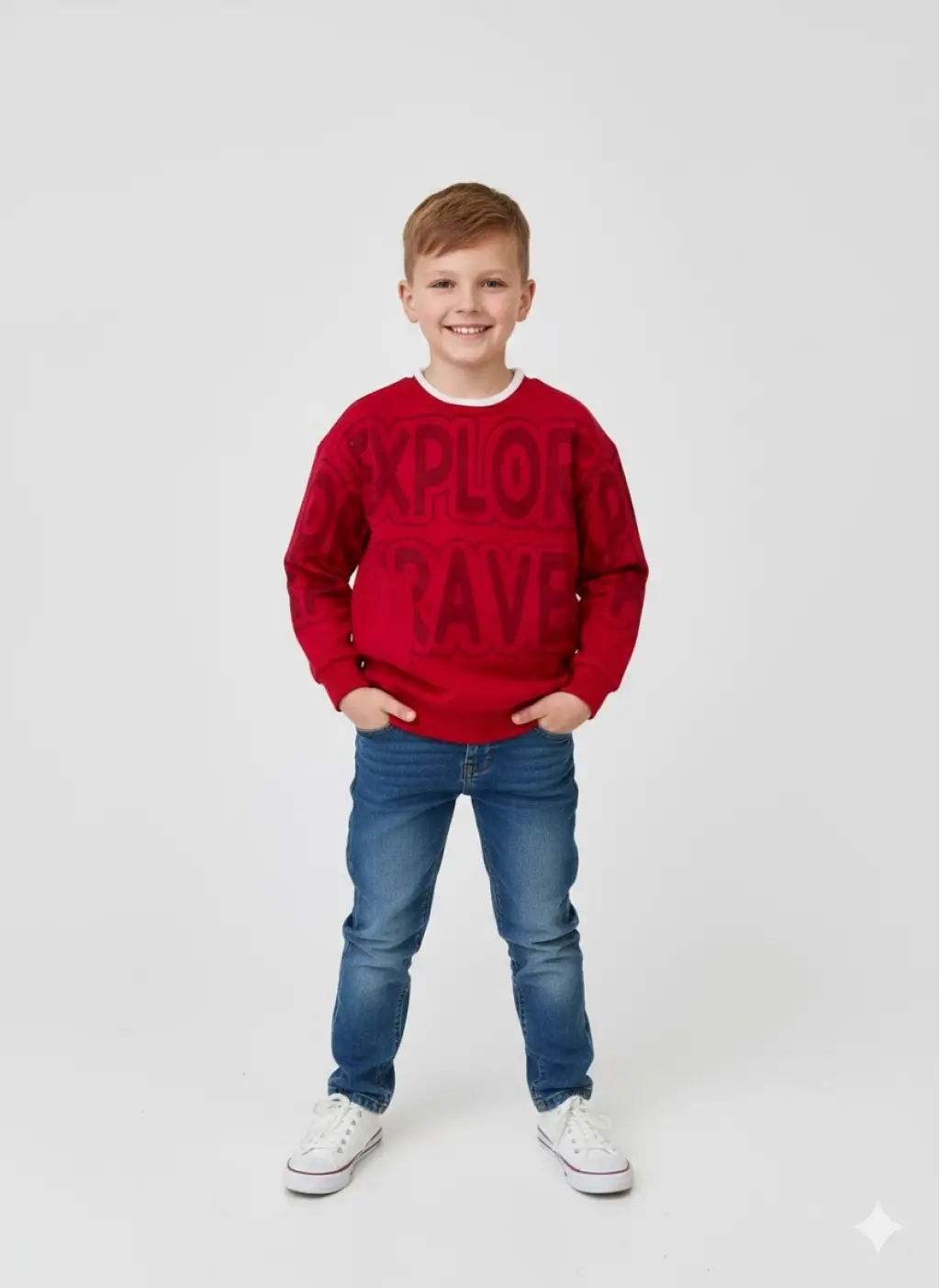 10-13 Yaş Kesik Detay Kırmızı Sweat