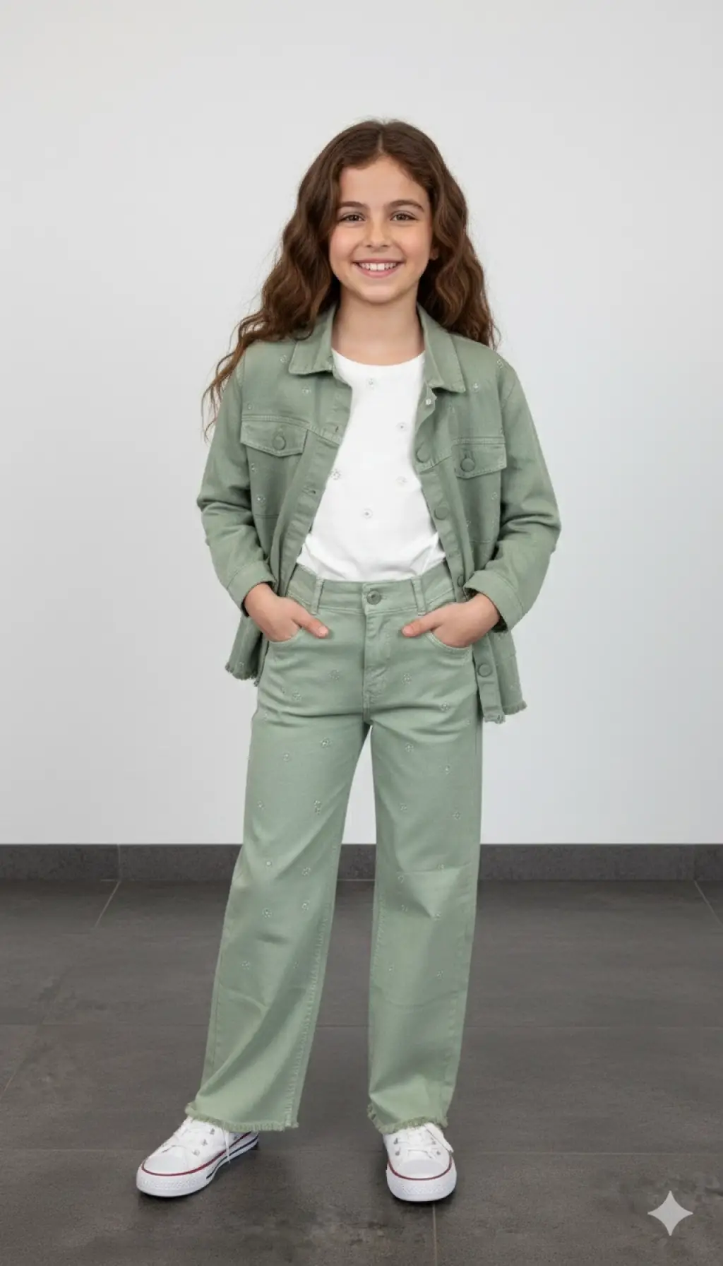 10-13 Yaş Yeşil Taşlı Kot 3lü Takım