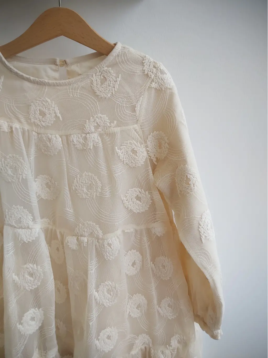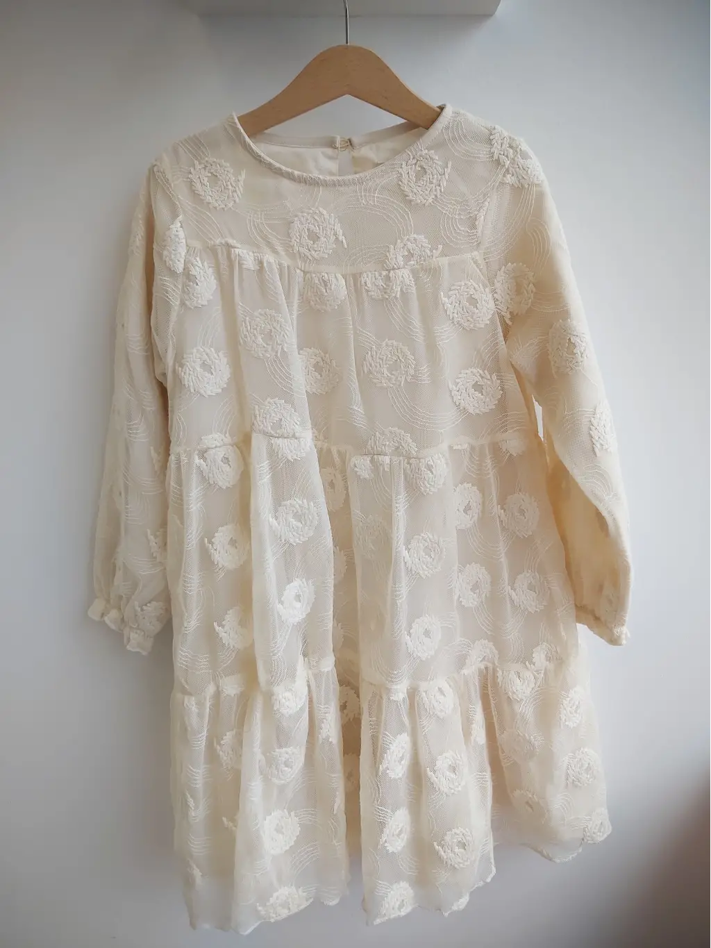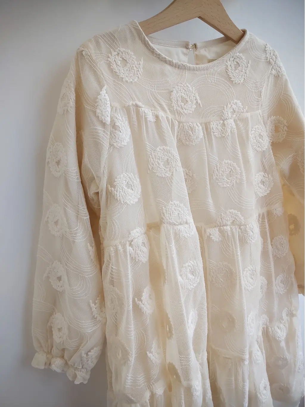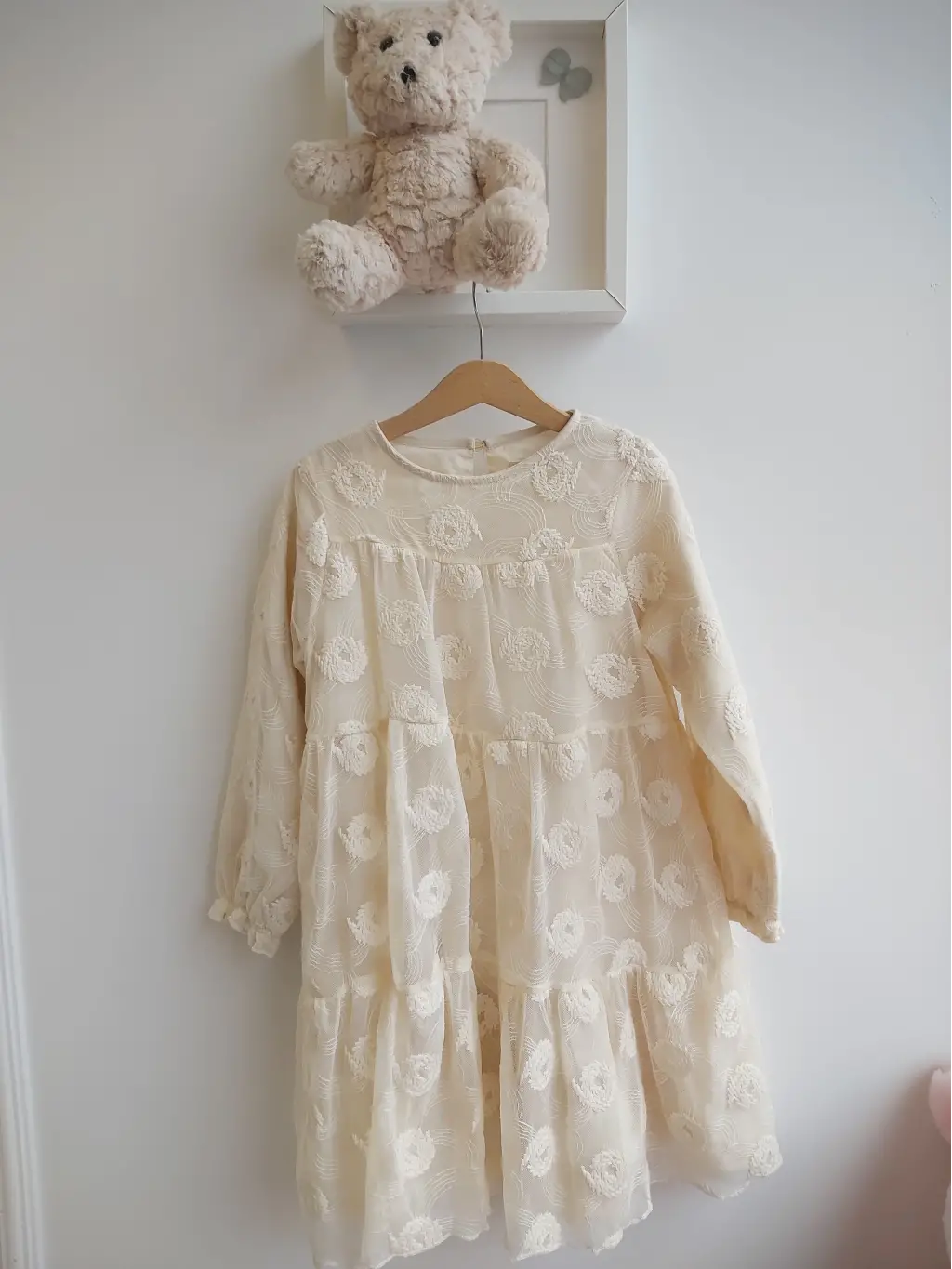 • 10-14 Yaş Bej Tül İşlemeli Elbise