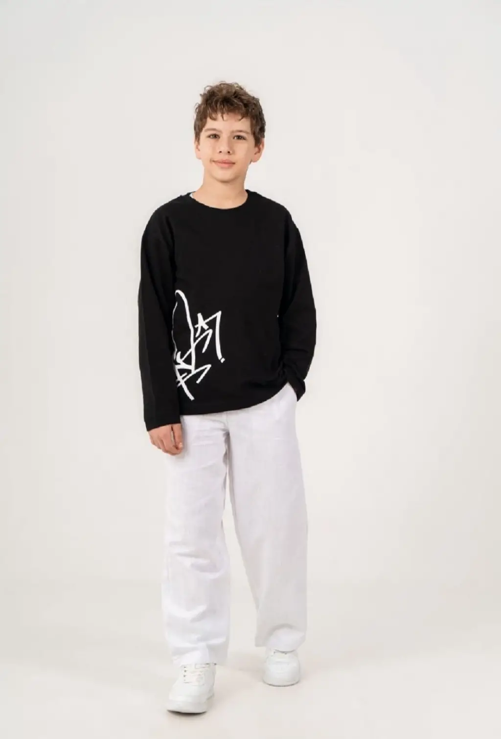 10-15 Yaş Siyah Graffiti Baskılı Tişört