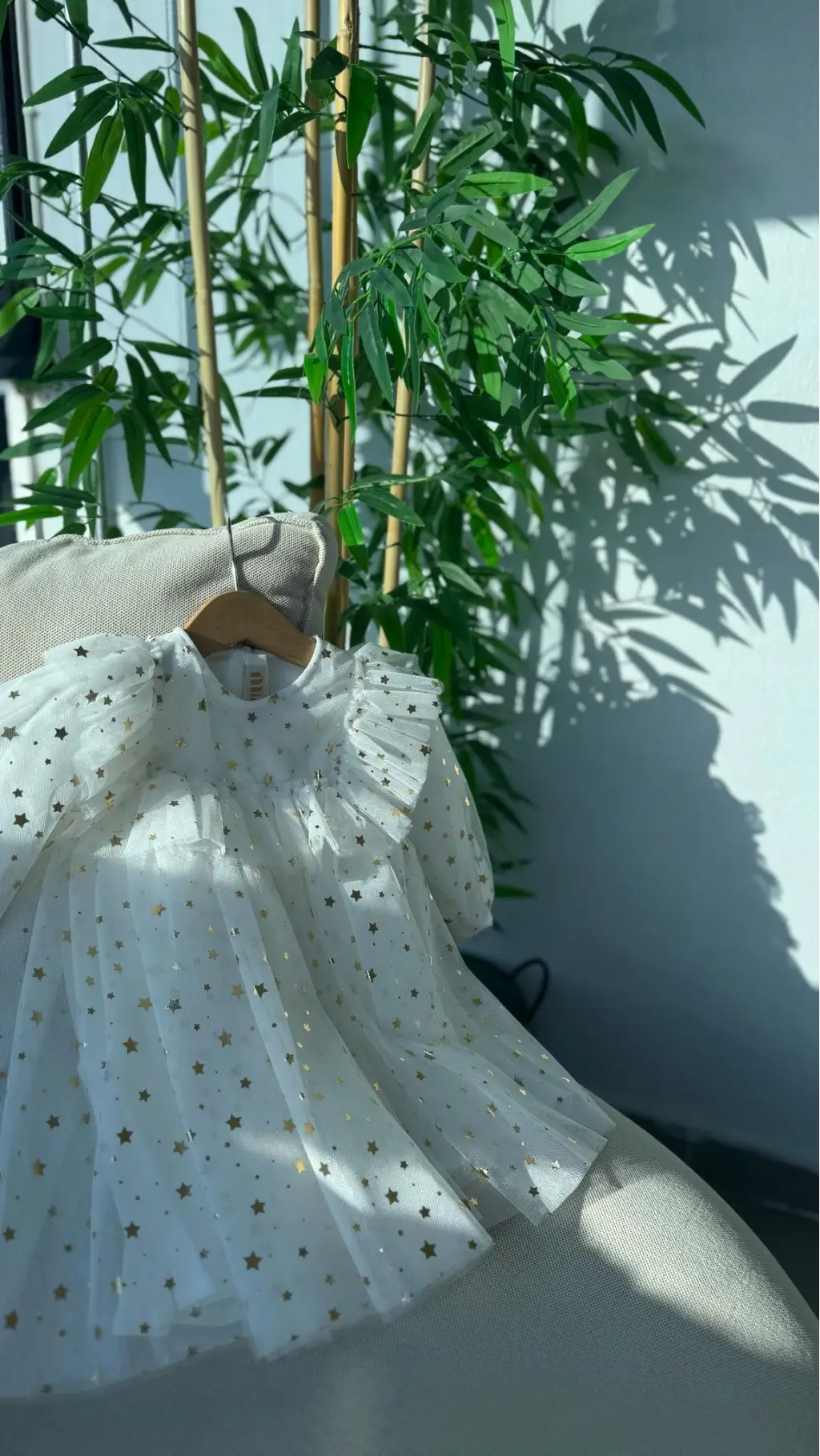 • 2-5 Yaş Gold Yıldız Detaylı Tütülü Elbise