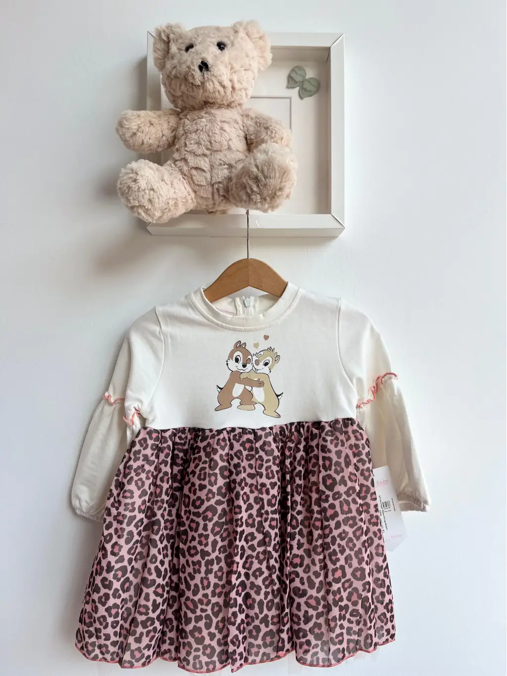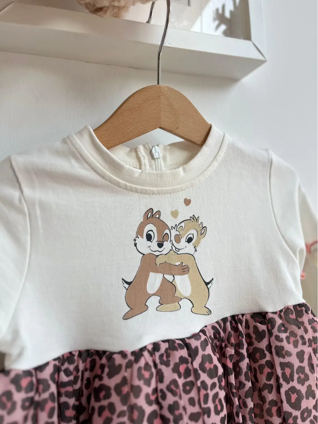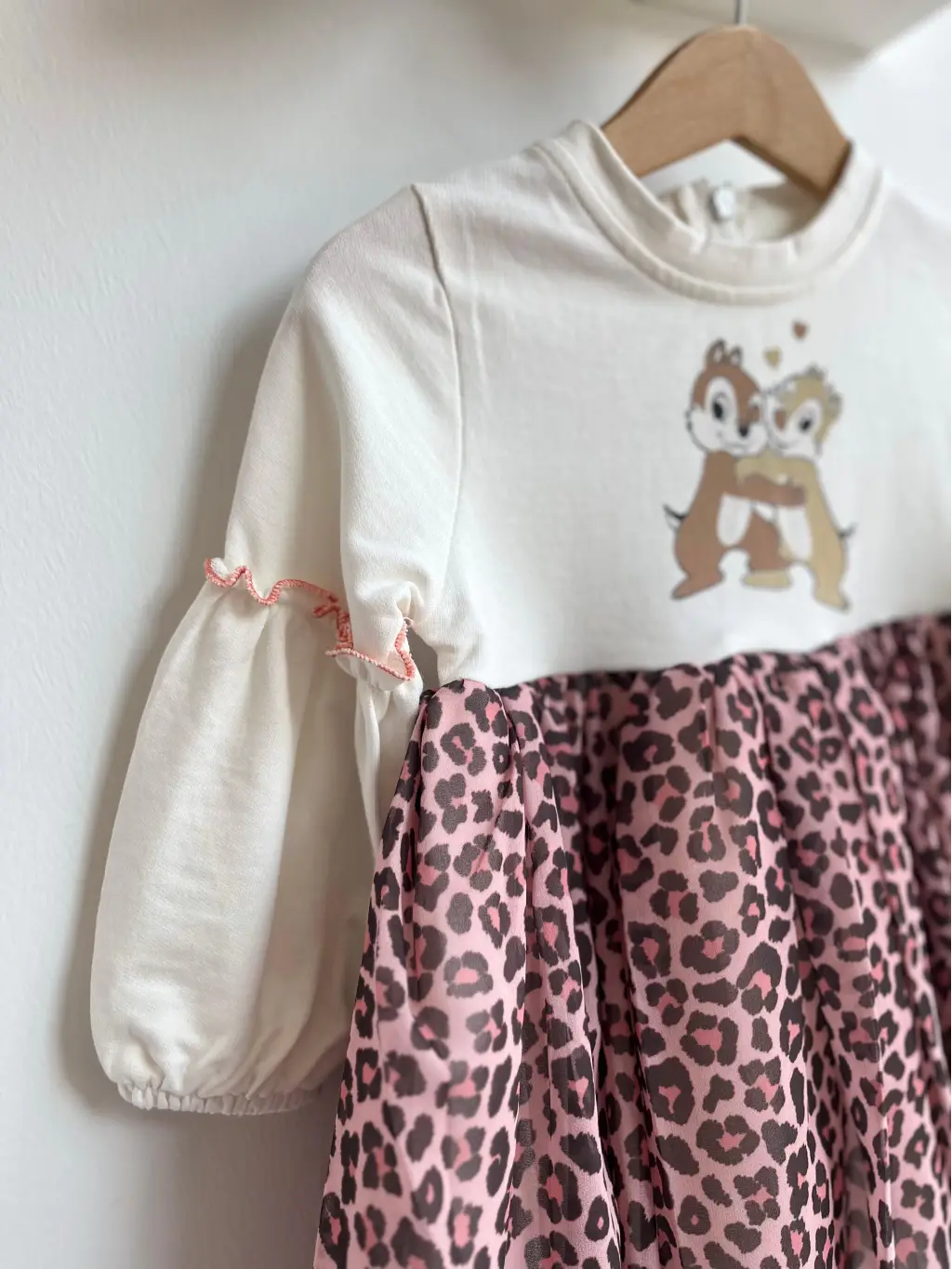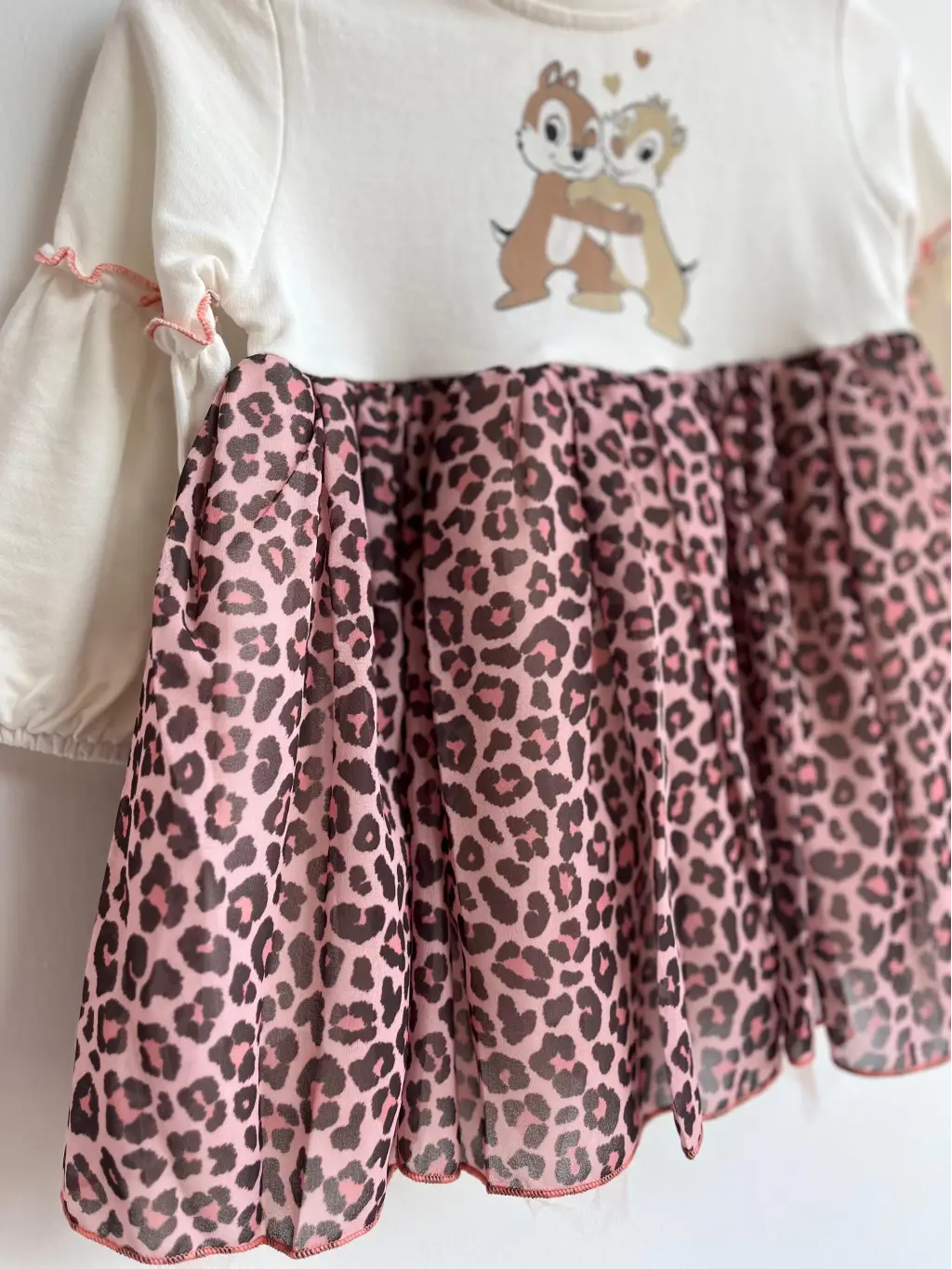 2-5 Yaş Leopar Desen Sincap Baskılı Elbise