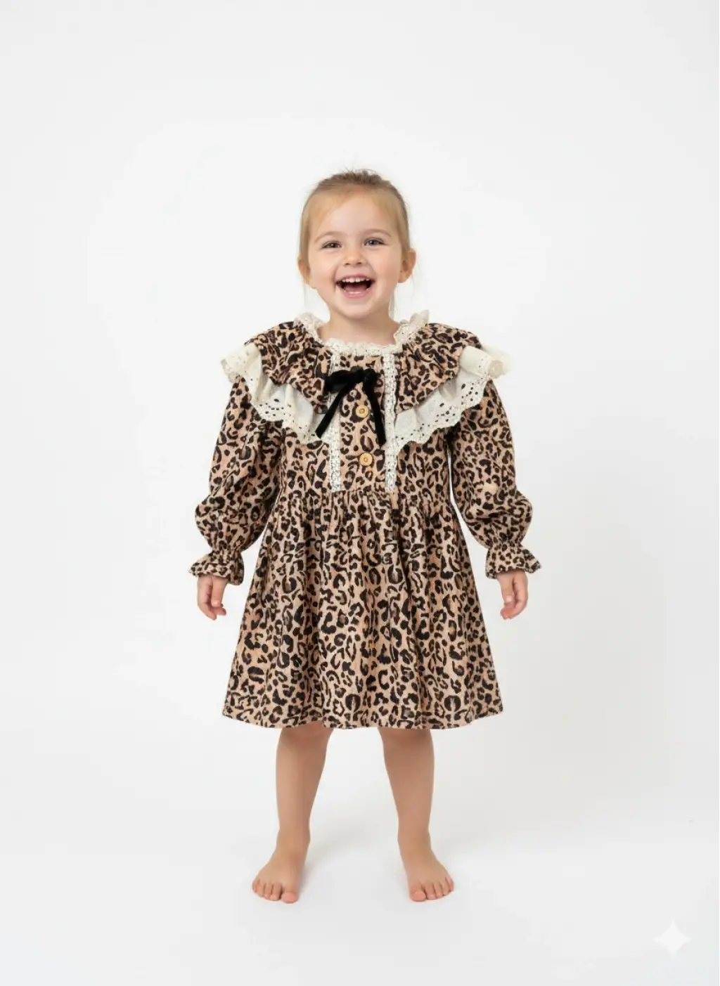 • 2-5 Yaş Leopar Yaka Detaylı Elbise