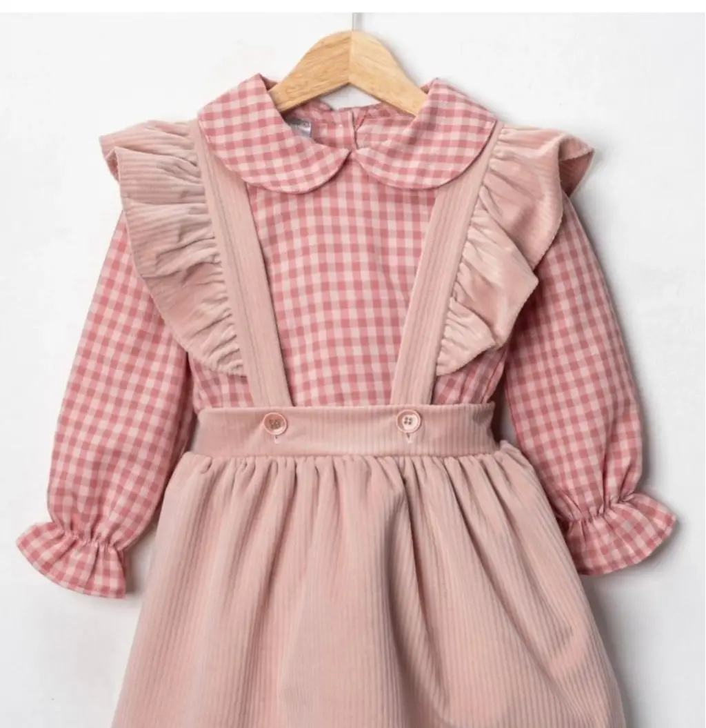 2-5 Yaş Pembe Kareli Gömlekli Salopet Elbise