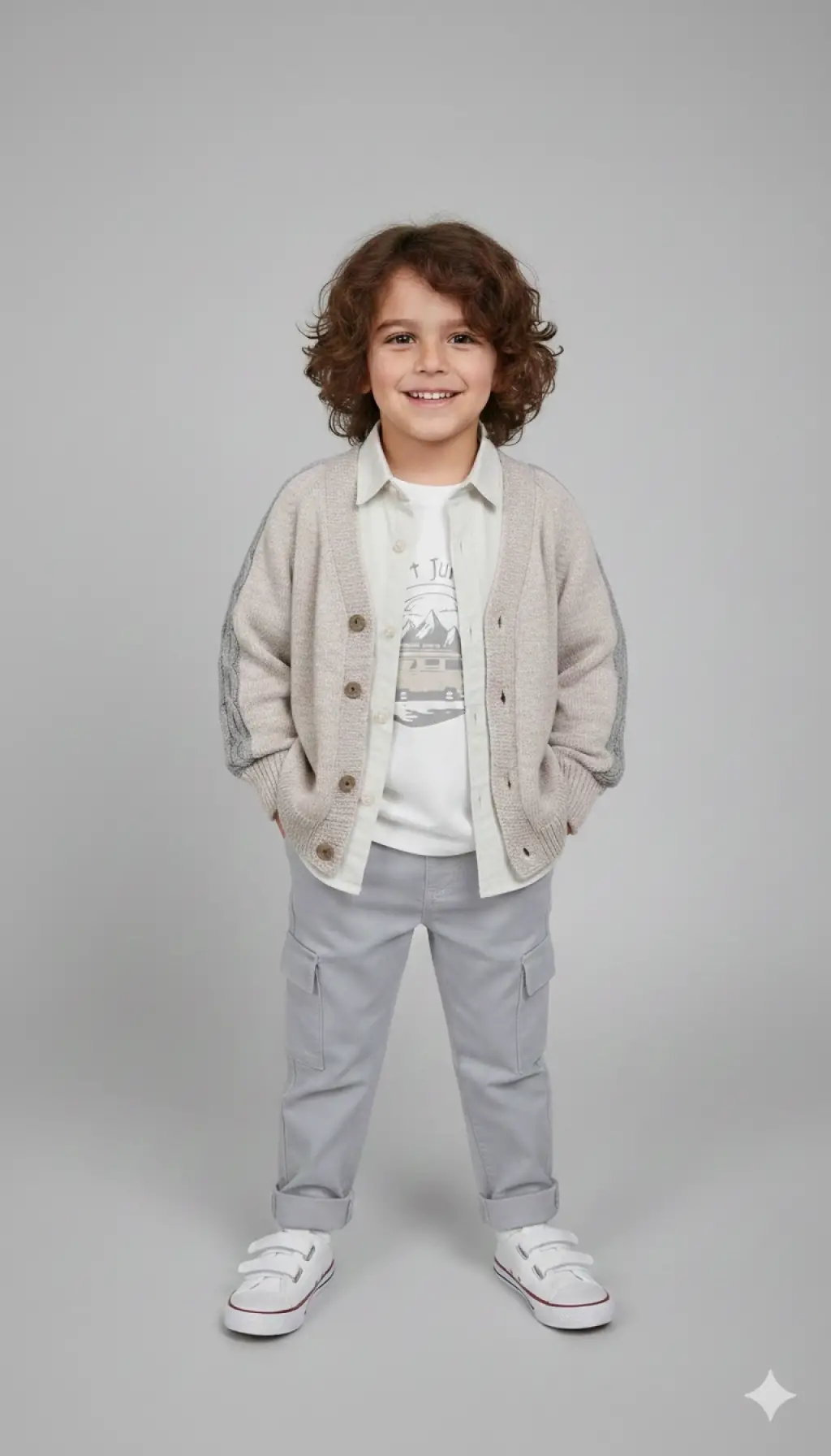 2-6 Yaş Gri Hırkalı Gömlekli Takım