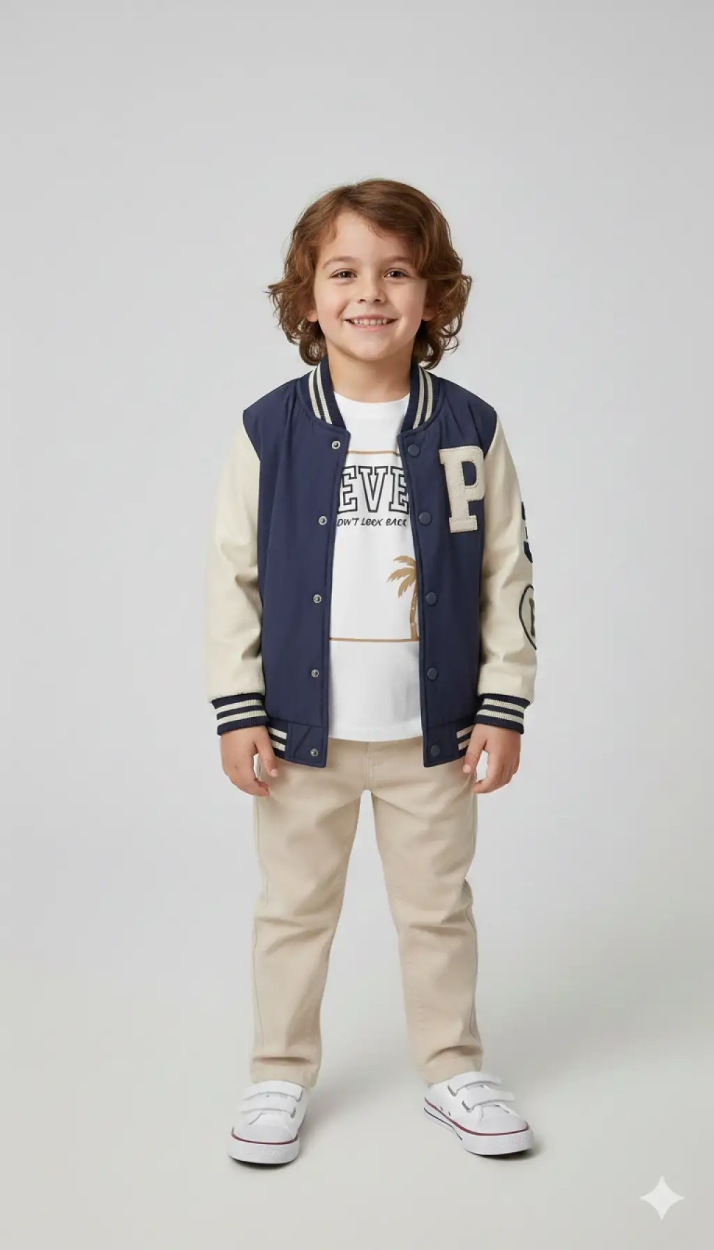 2-6 Yaş Krem Laci Kolej Ceketli 3lü Takım