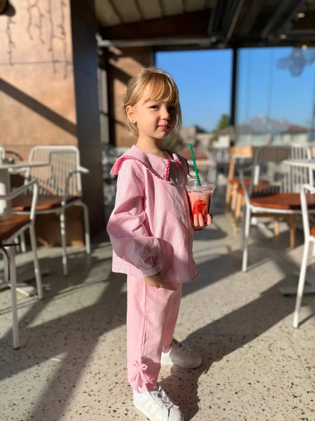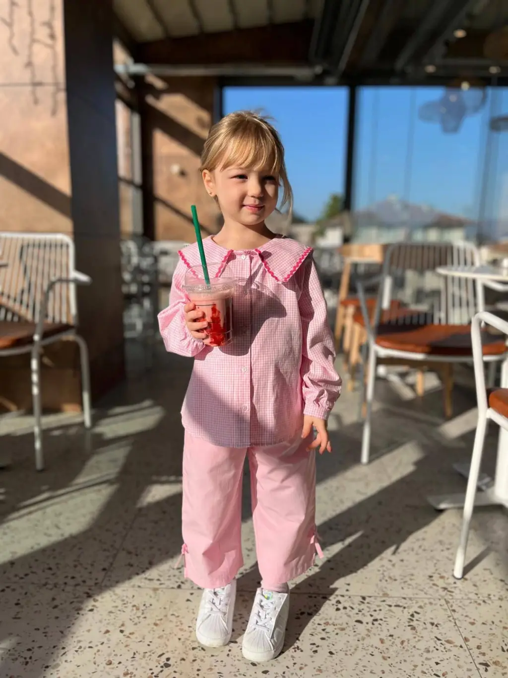 2-7 Yaş Pembe Kareli Gömlekli 2li Takım
