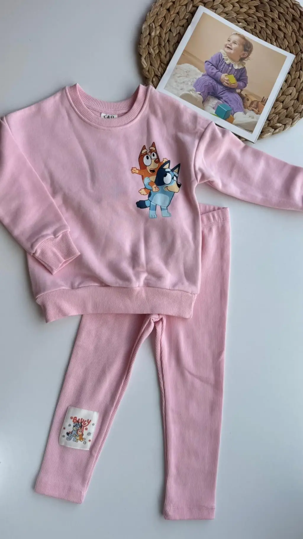 2-8 Yaş Pembe Bluey Taytlı Takım