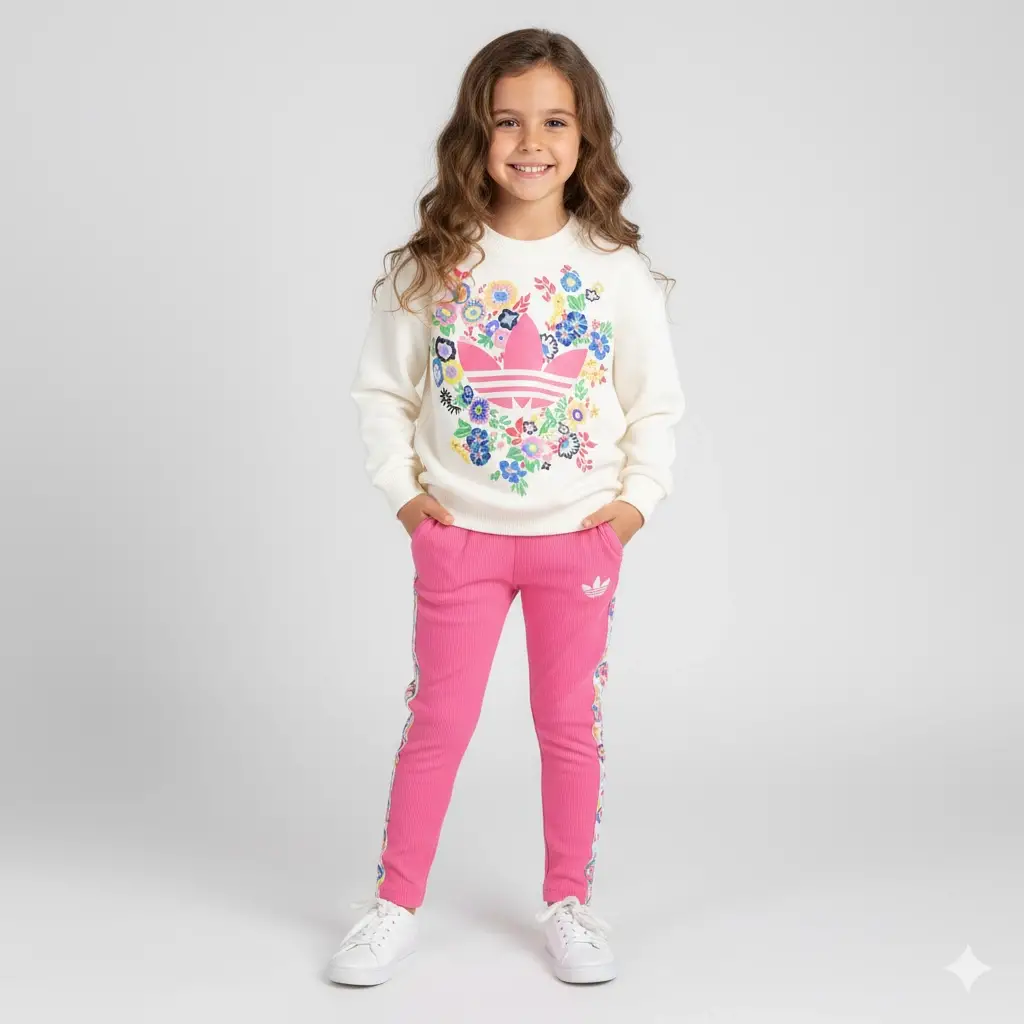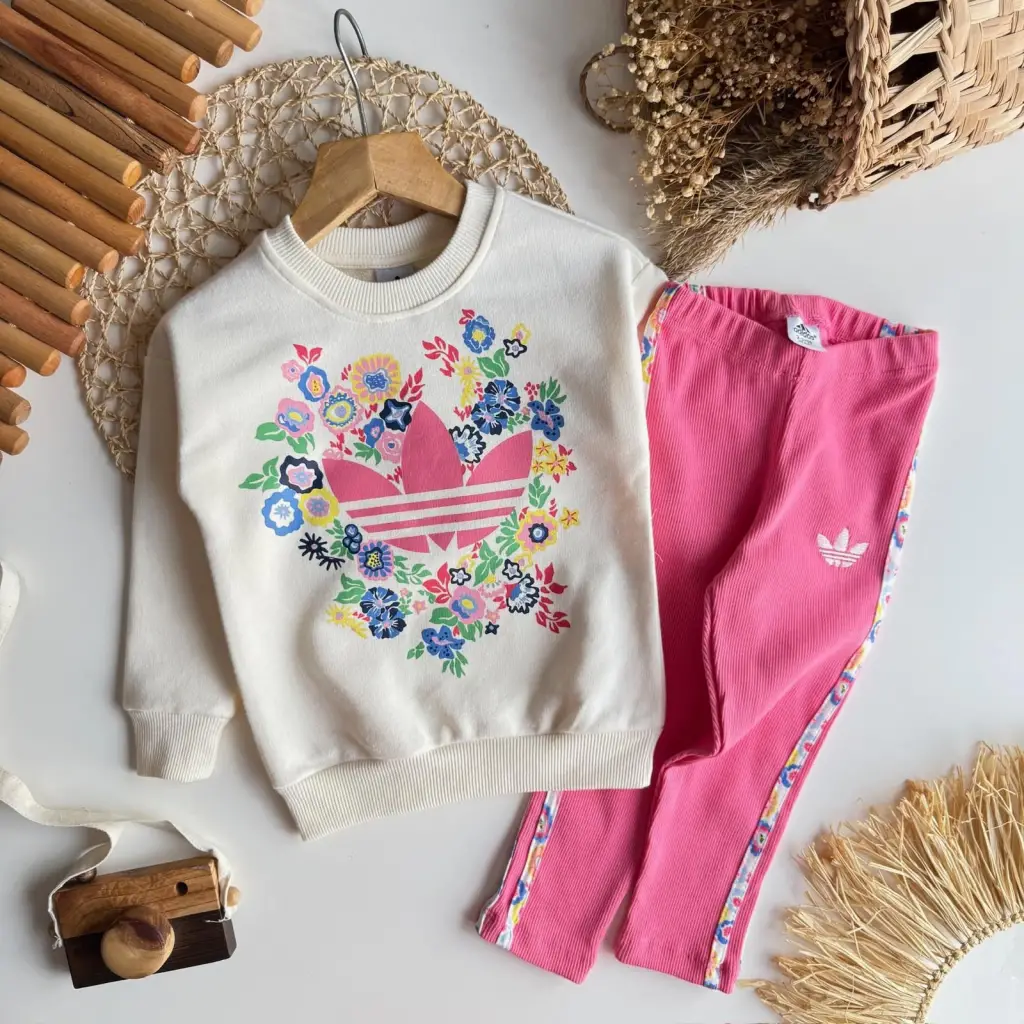 • 2-8 Yaş Pembe Çiçekli Adidas Takım