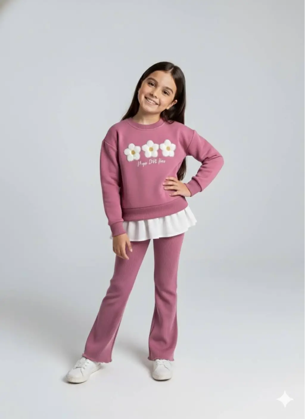 2-8 Yaş Pembe Papatyalı Taytlı Takım