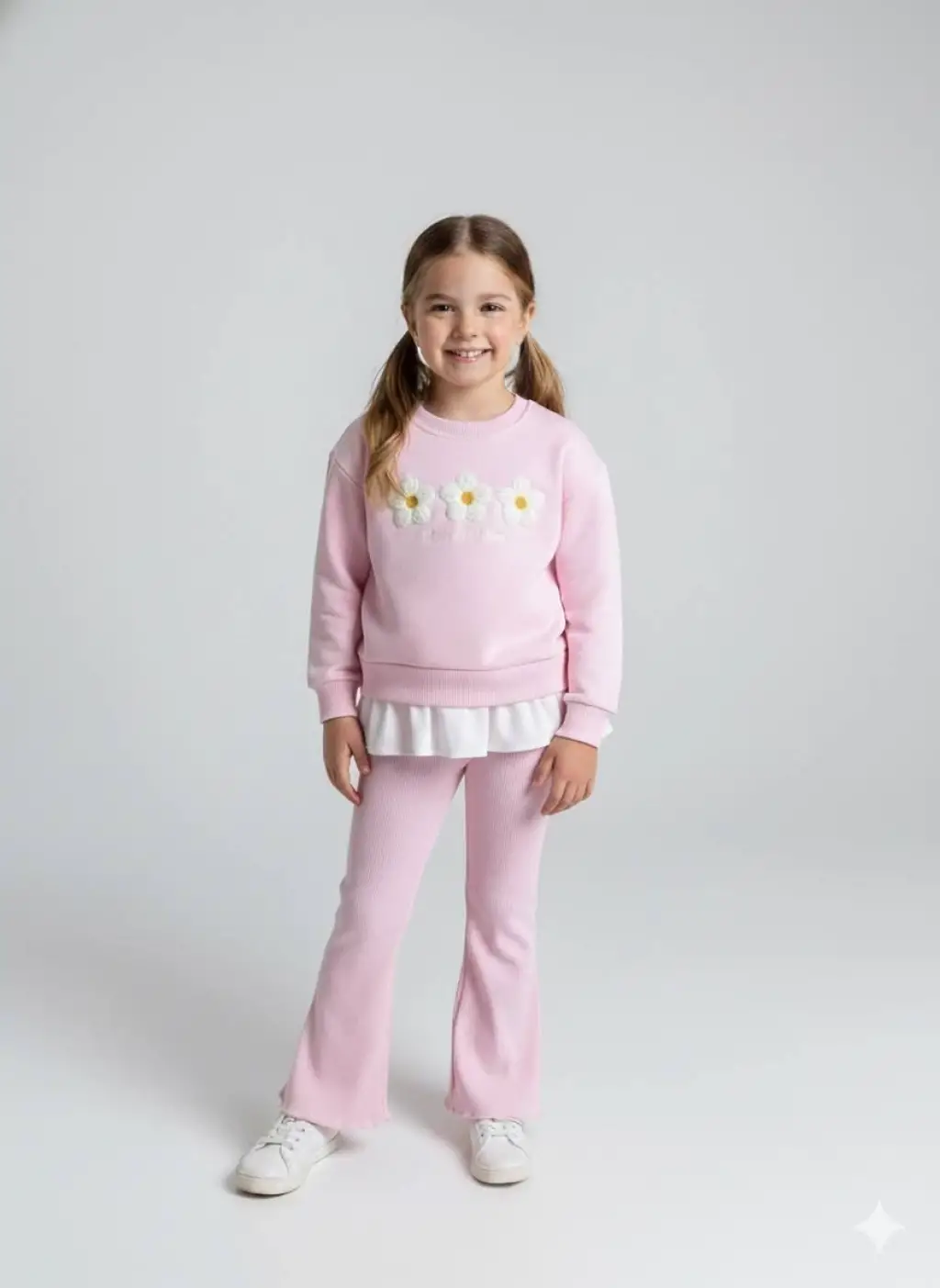 2-8 Yaş Toz Pembe Papatyalı Taytlı Takım