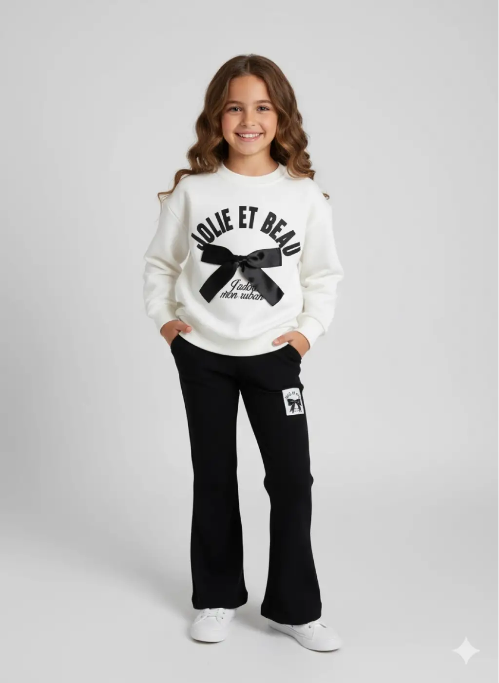 • 2-8 Yaş Siyah Kurdele Detaylı Taytlı Takım