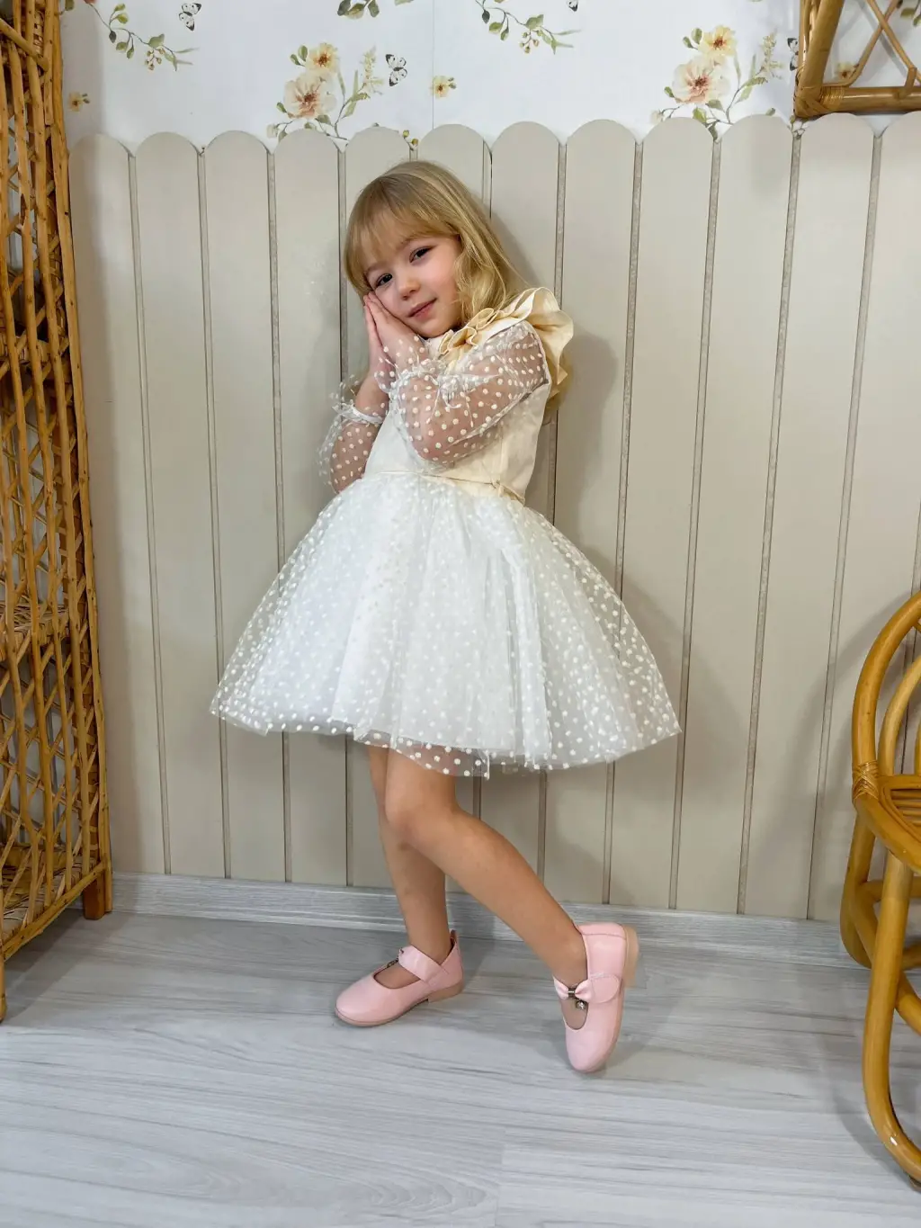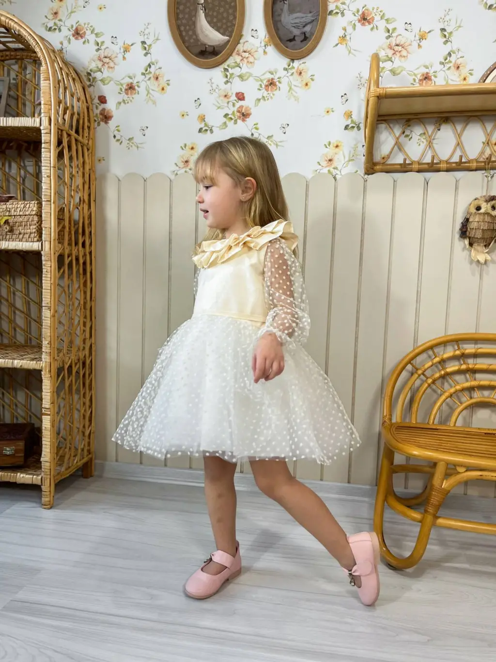 2-8 Yaş Tüllü Benekli Elbise
