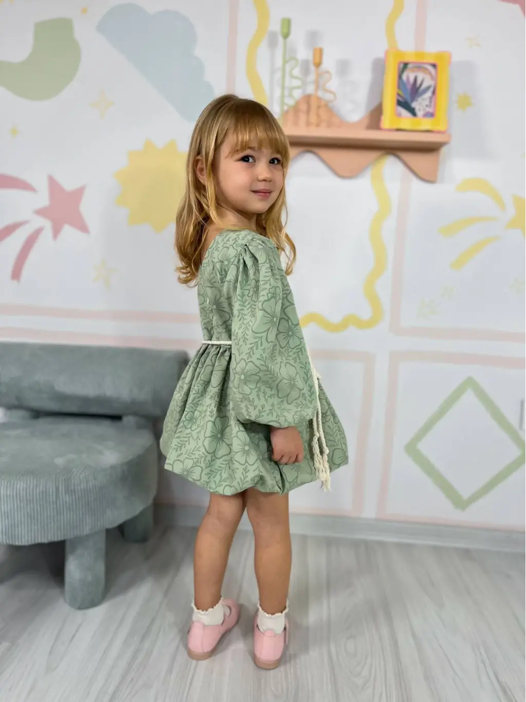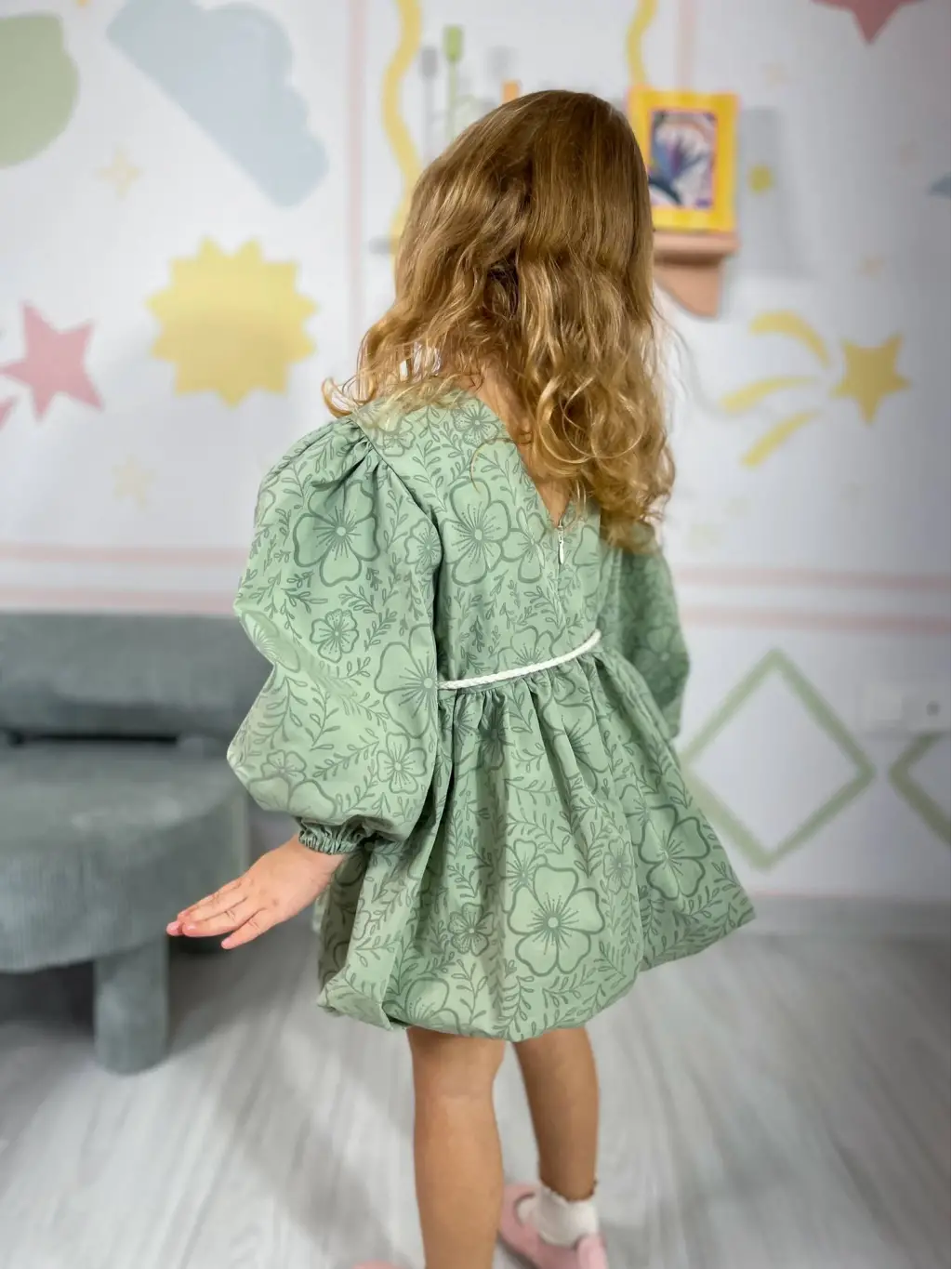 2-8 Yaş Yeşil Desenli Elbise
