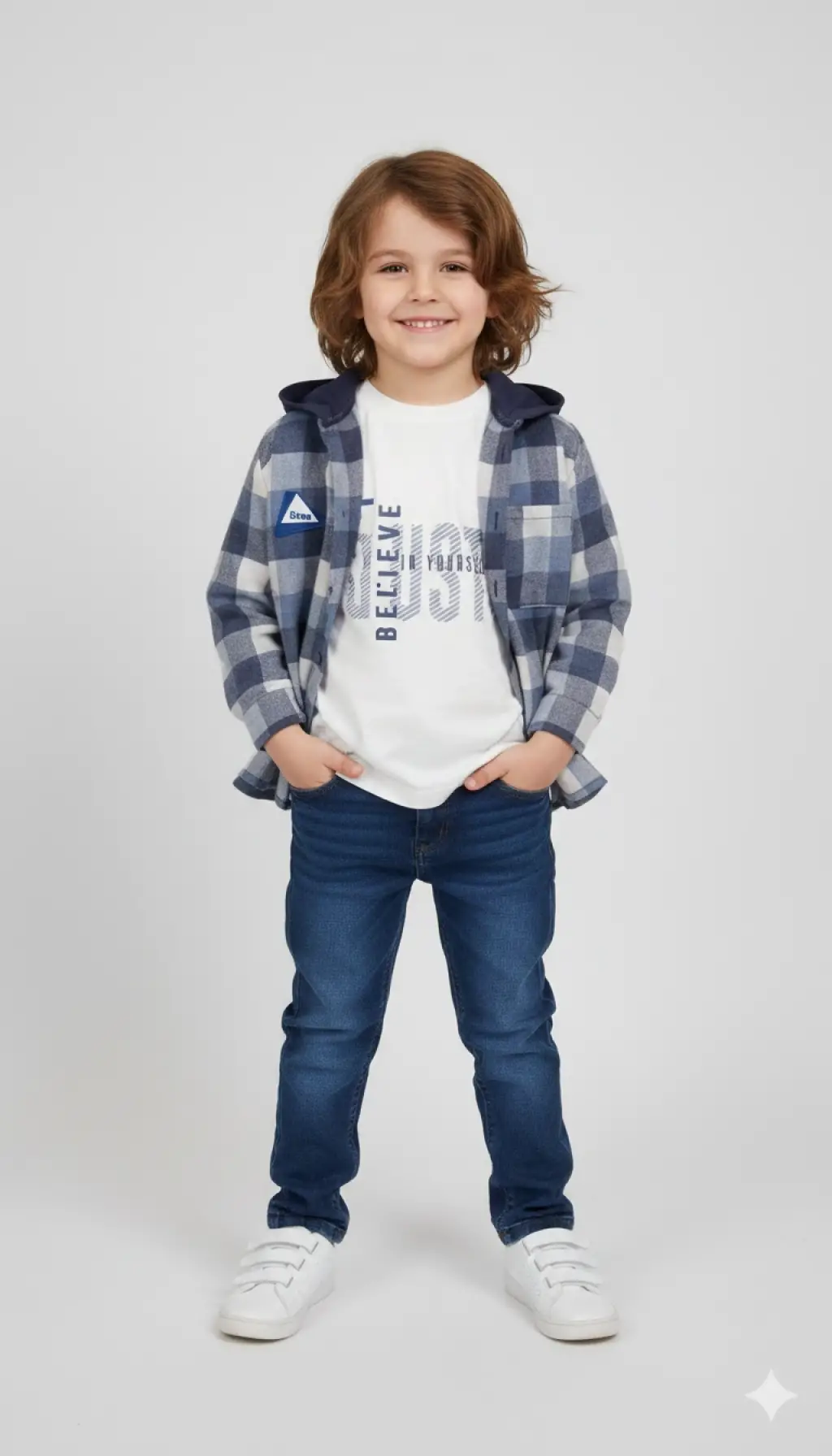 7-10 Yaş Ekoseli Gömlekli 3lü Takım