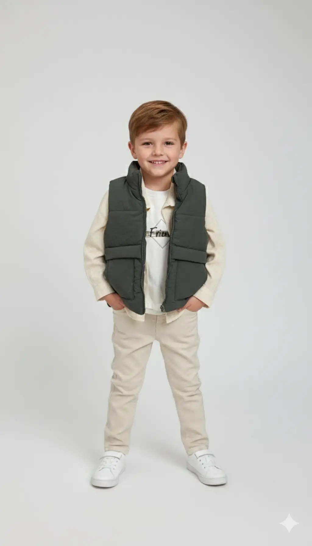 2-6 Yaş Yeşil Şişme Yelekli Gömlekli Takım