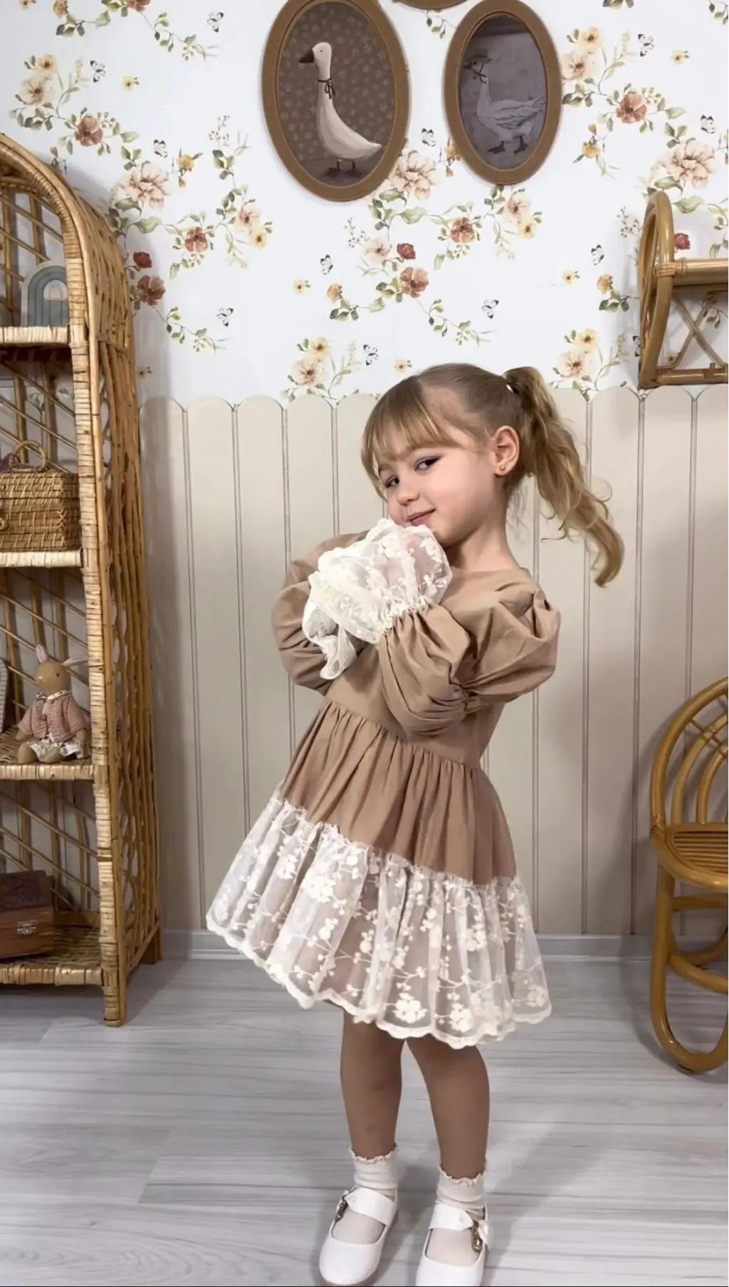 3-7 Yaş Sütlü Kahve Tüllü Elbise
