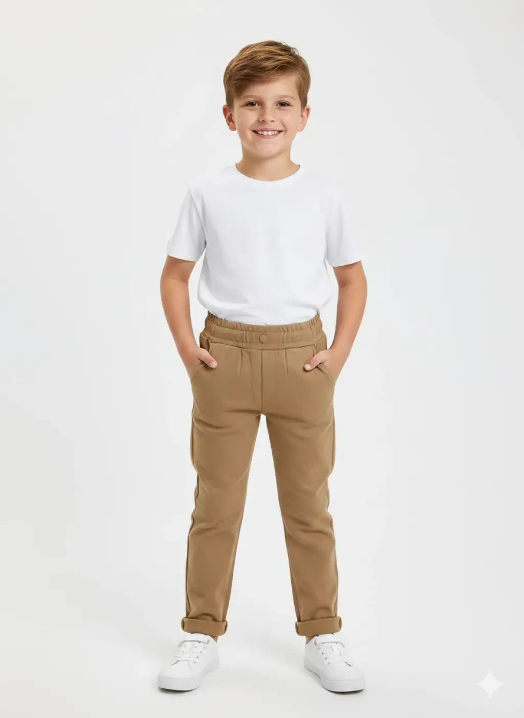 5-14 Yaş Bel Lastikli Camel Pantolon