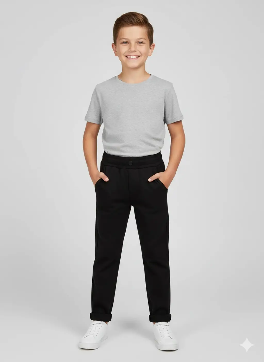 5-14 Yaş Siyah Düğmeli Bel Lastikli Pantolon