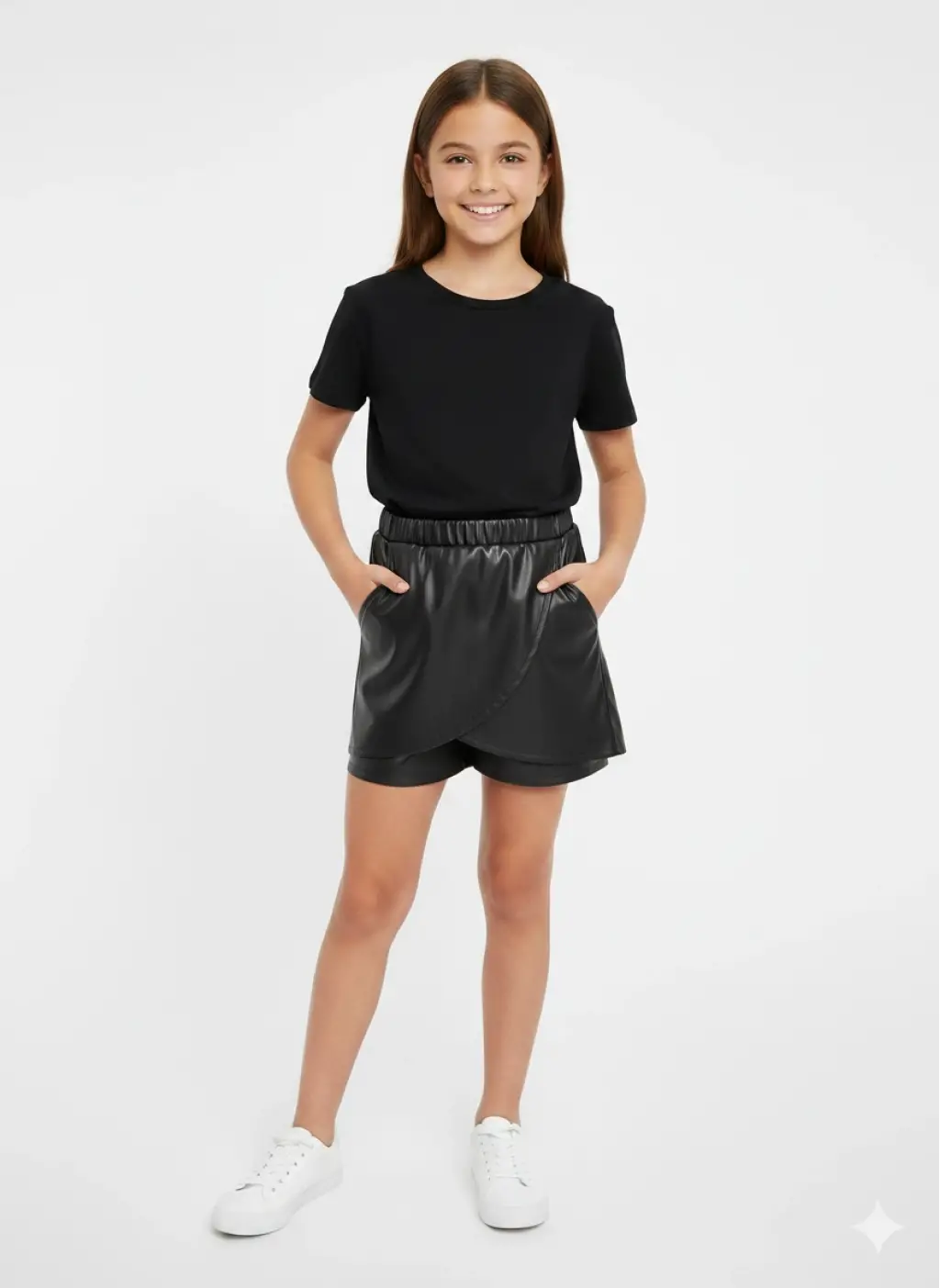 • 5-14 Yaş Siyah Deri Şort Etek