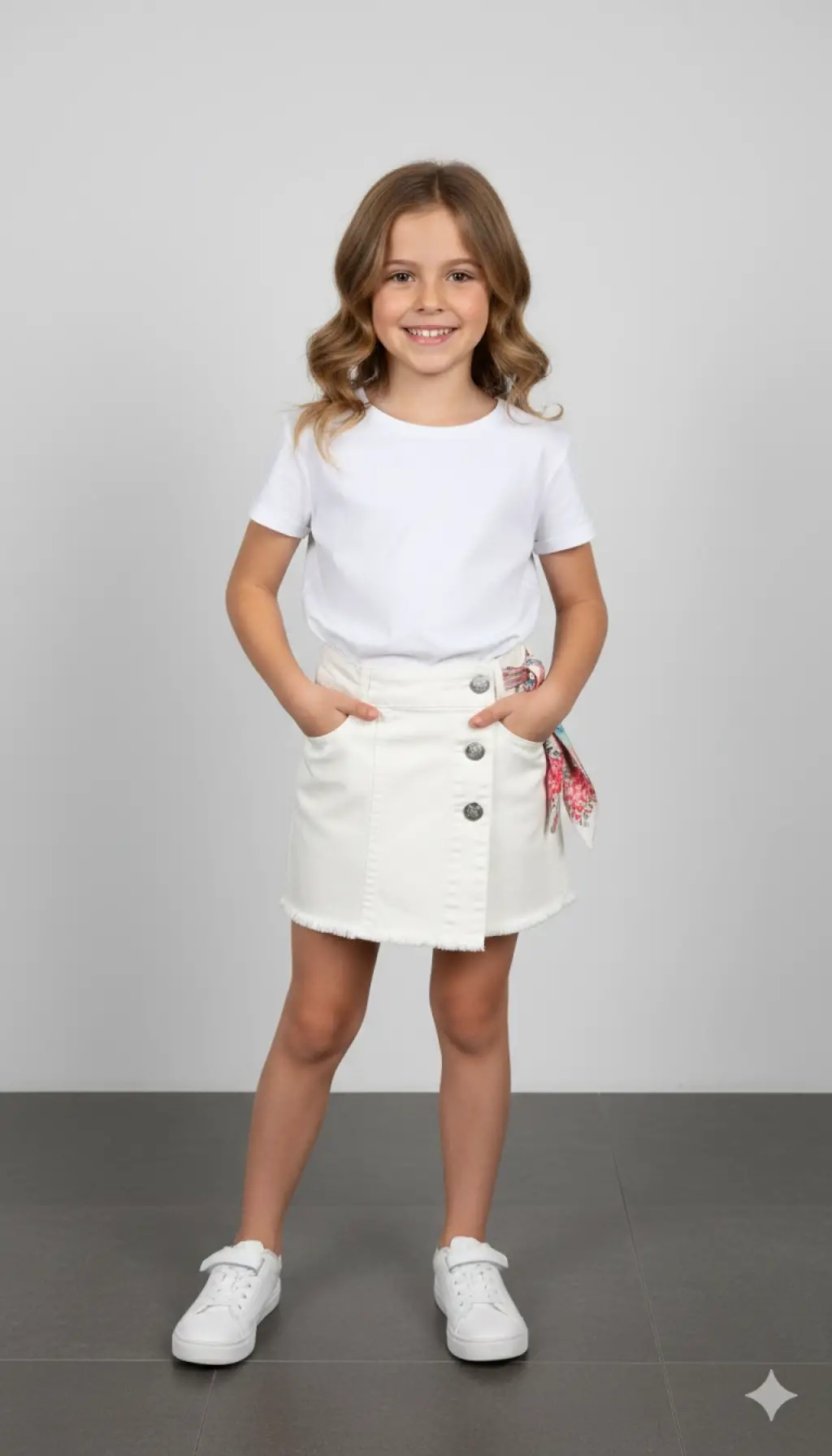 5-8 Yaş Beyaz Fularlı Şort Etek
