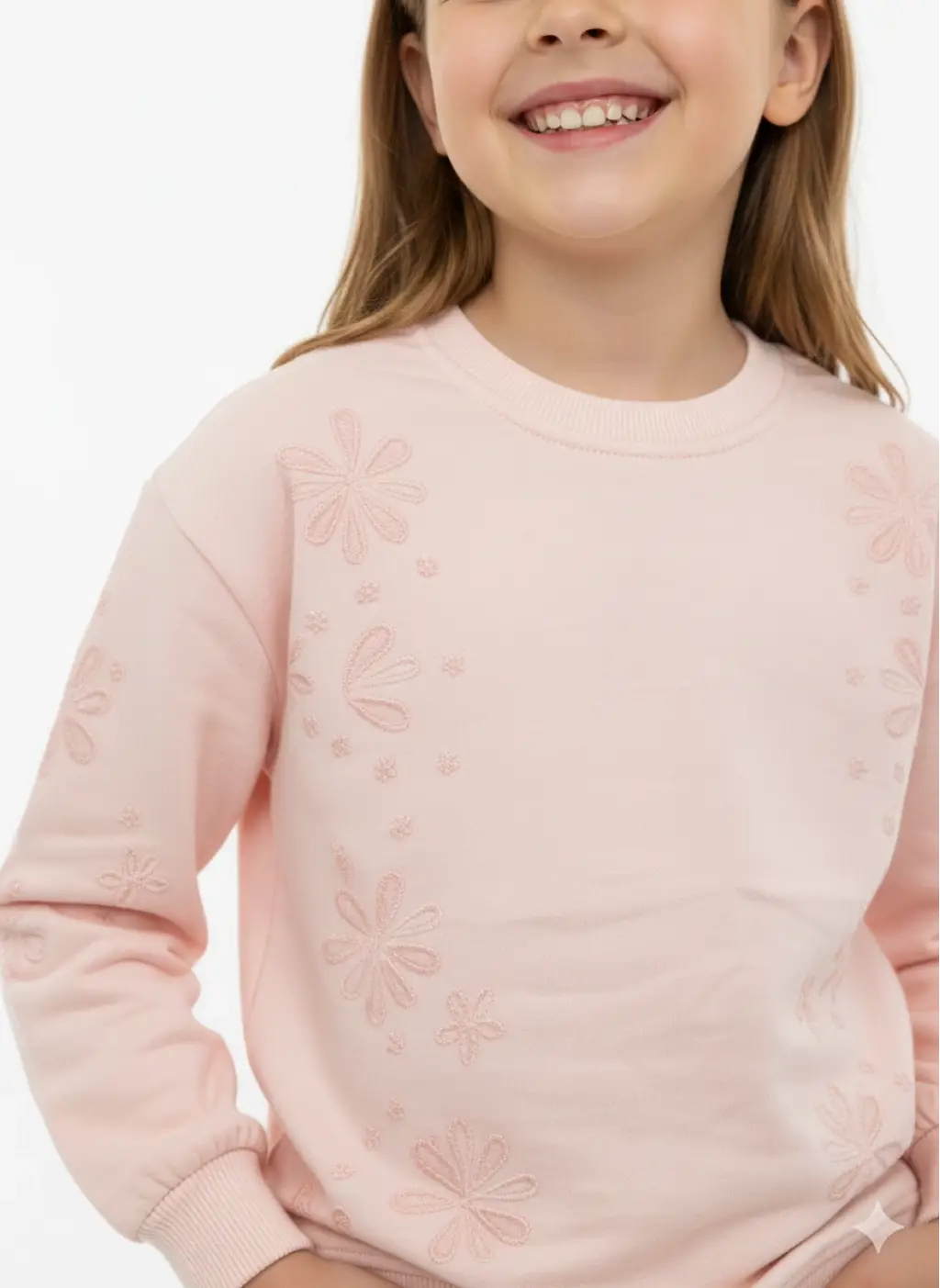 • 6-10 Yaş Pembe İşlemeli Sweat
