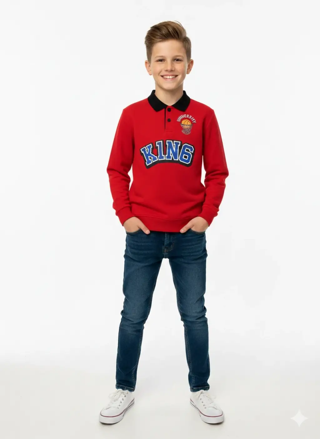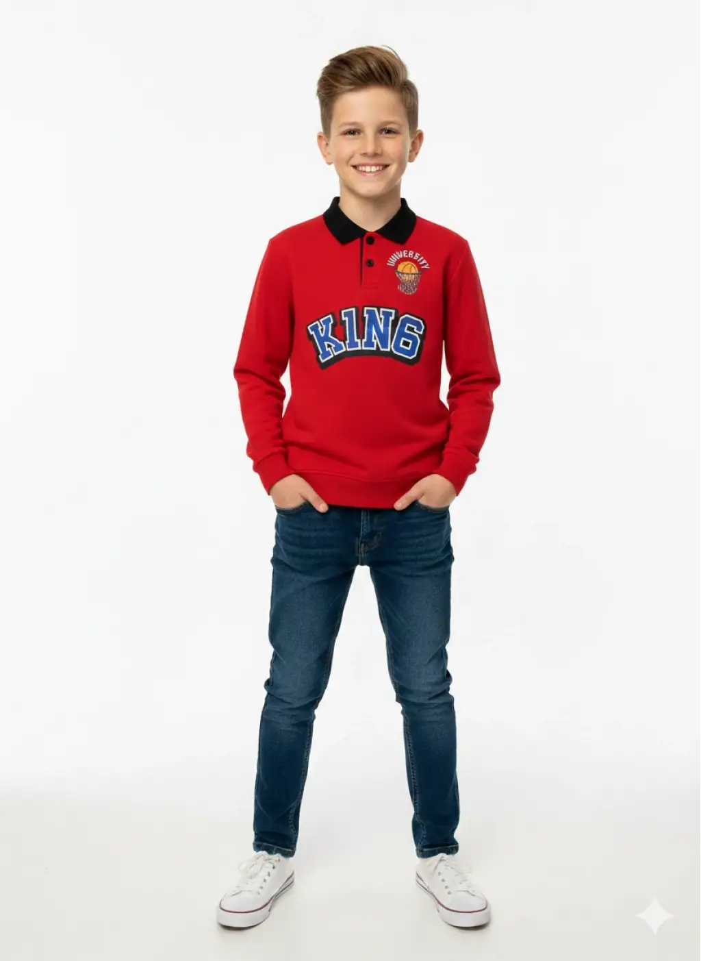 6-9 Yaş Kırmızı Yakalı Unıversıty Sweat