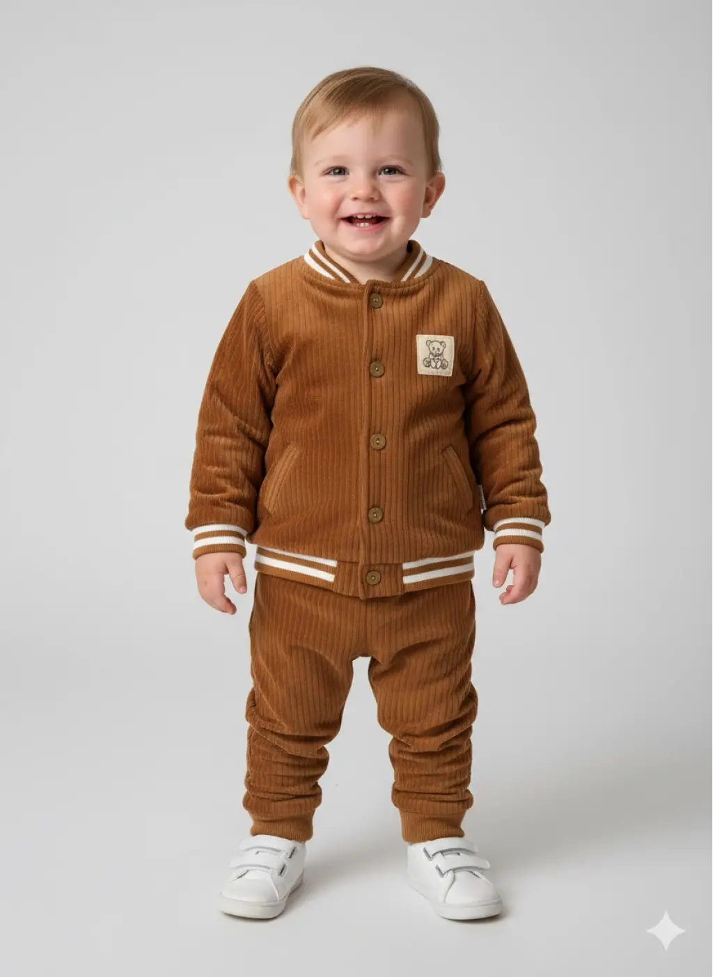 6-24 Ay Ayıcık Detaylı Kadife Ceketli Takım