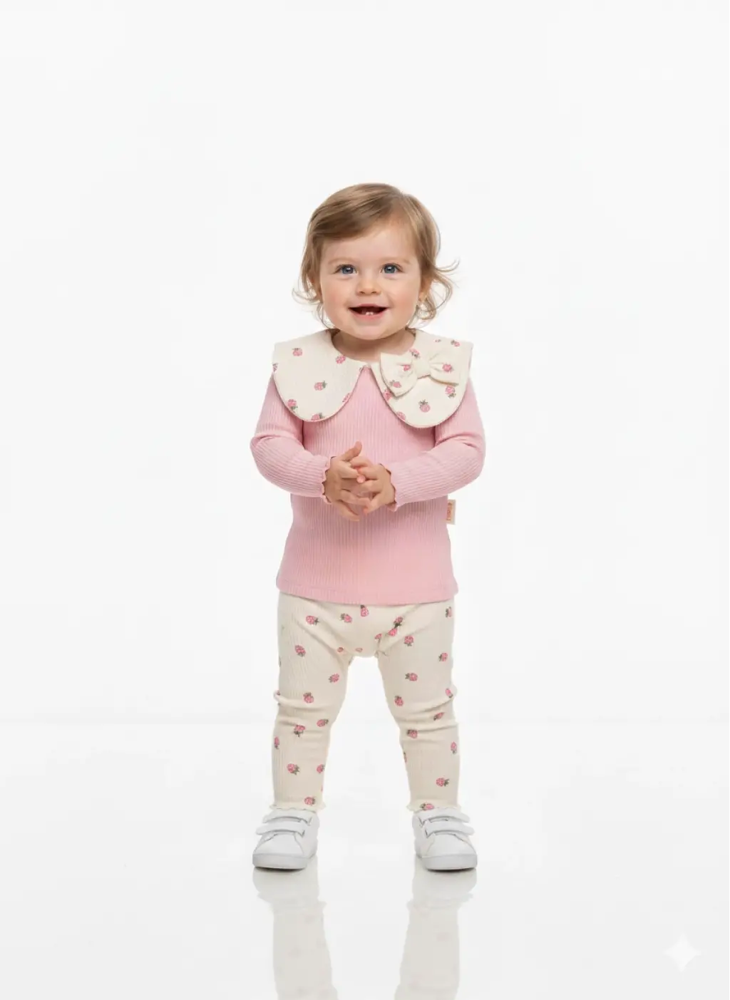 • 6-24 Ay Bebe Yaka Çilekli Taytlı Takım