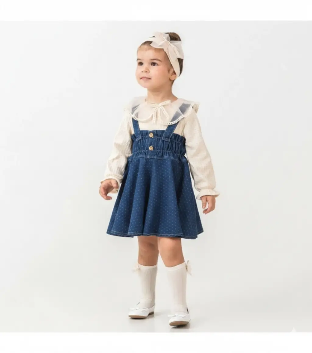 6-24 Ay Benekli Kot Bandanalı 3lü Elbise