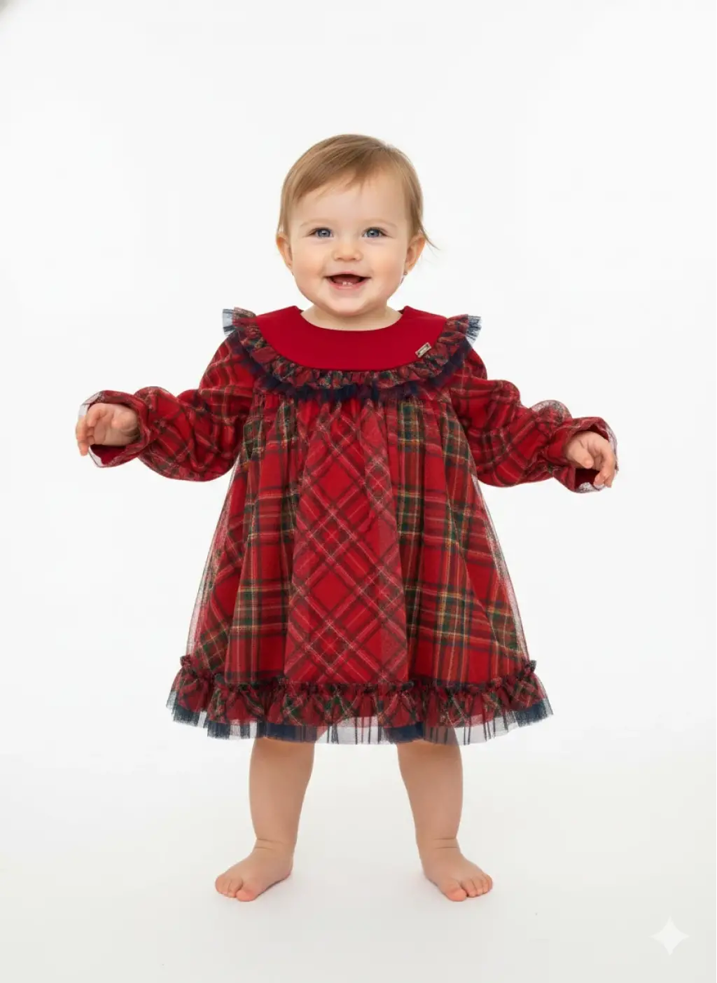 6-24 Ay Kırmızı Bebe Yaka Kareli Elbise