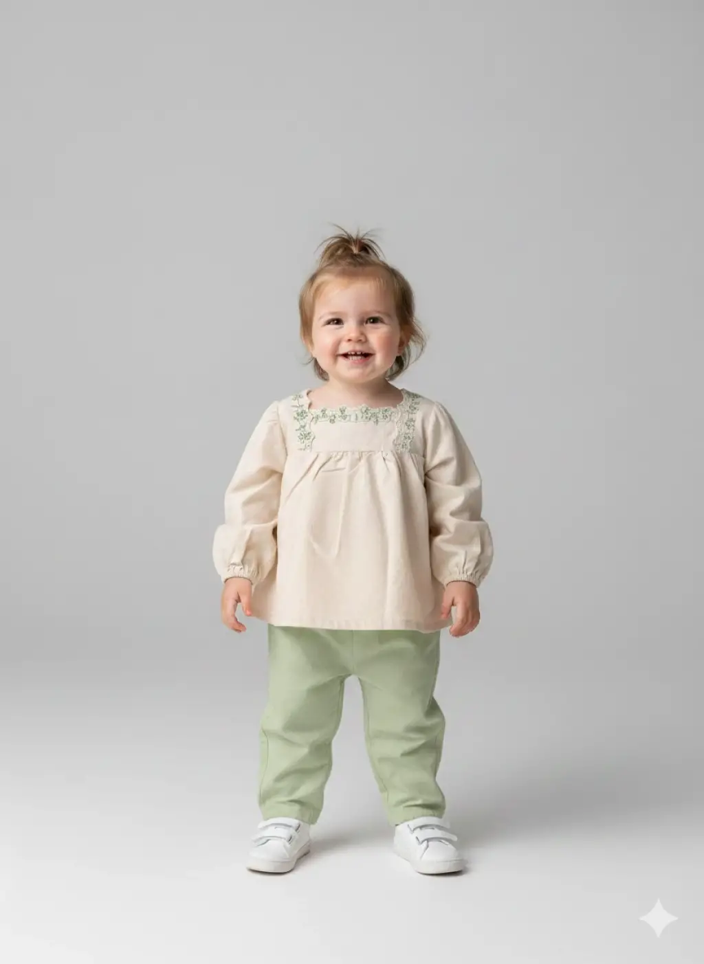 6-24 Ay Yeşil Çiçek İşlemeli 2li Takım
