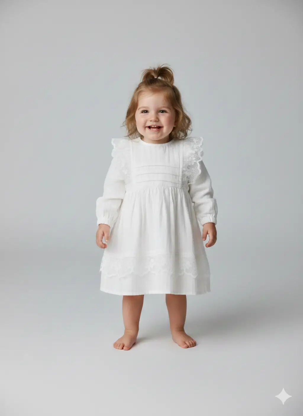6-36 Ay Müslin Dantel İşlemeli Elbise