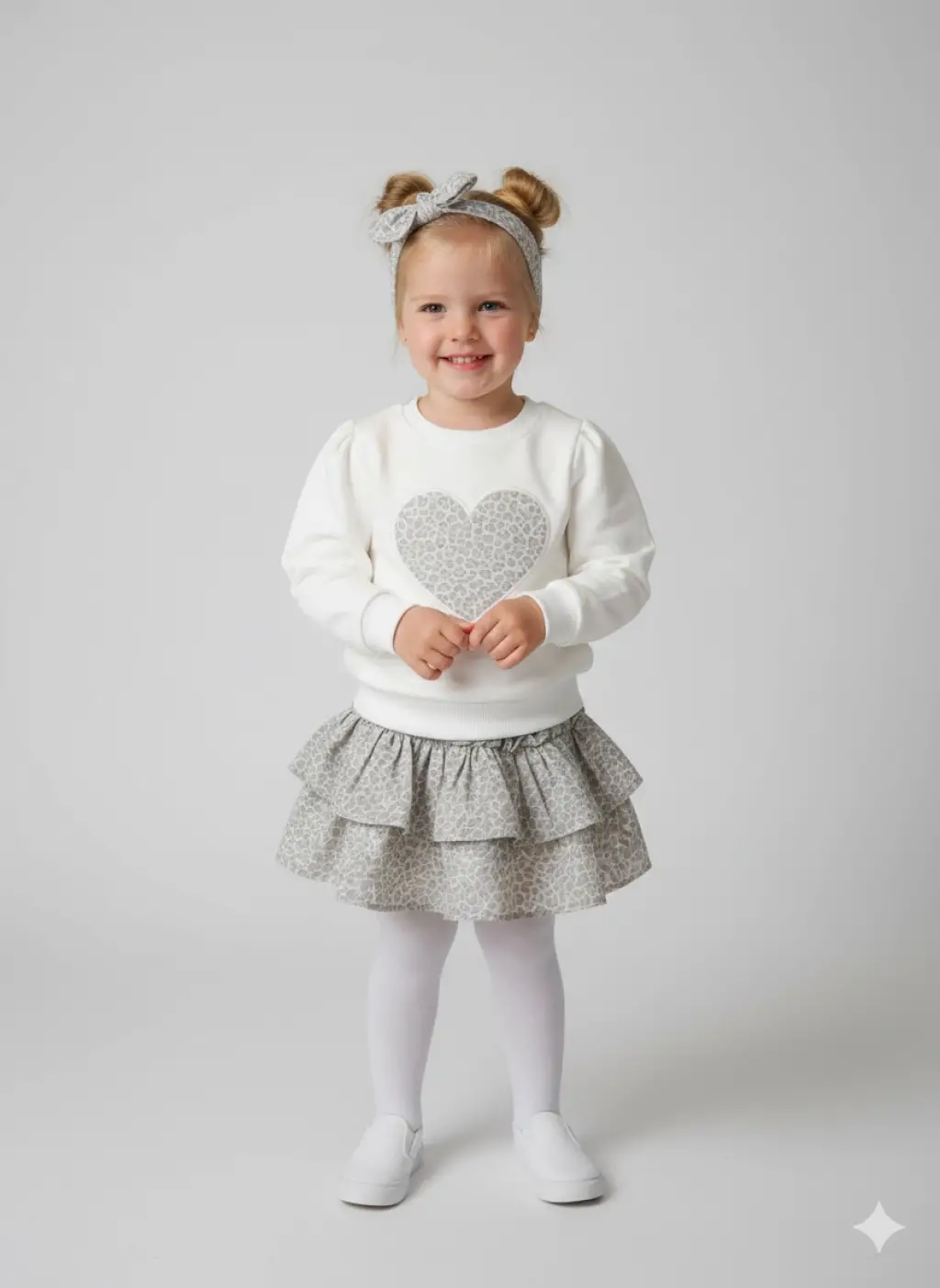 6-9 Yaş Leopar Kalpli Etekli 3lü Takım