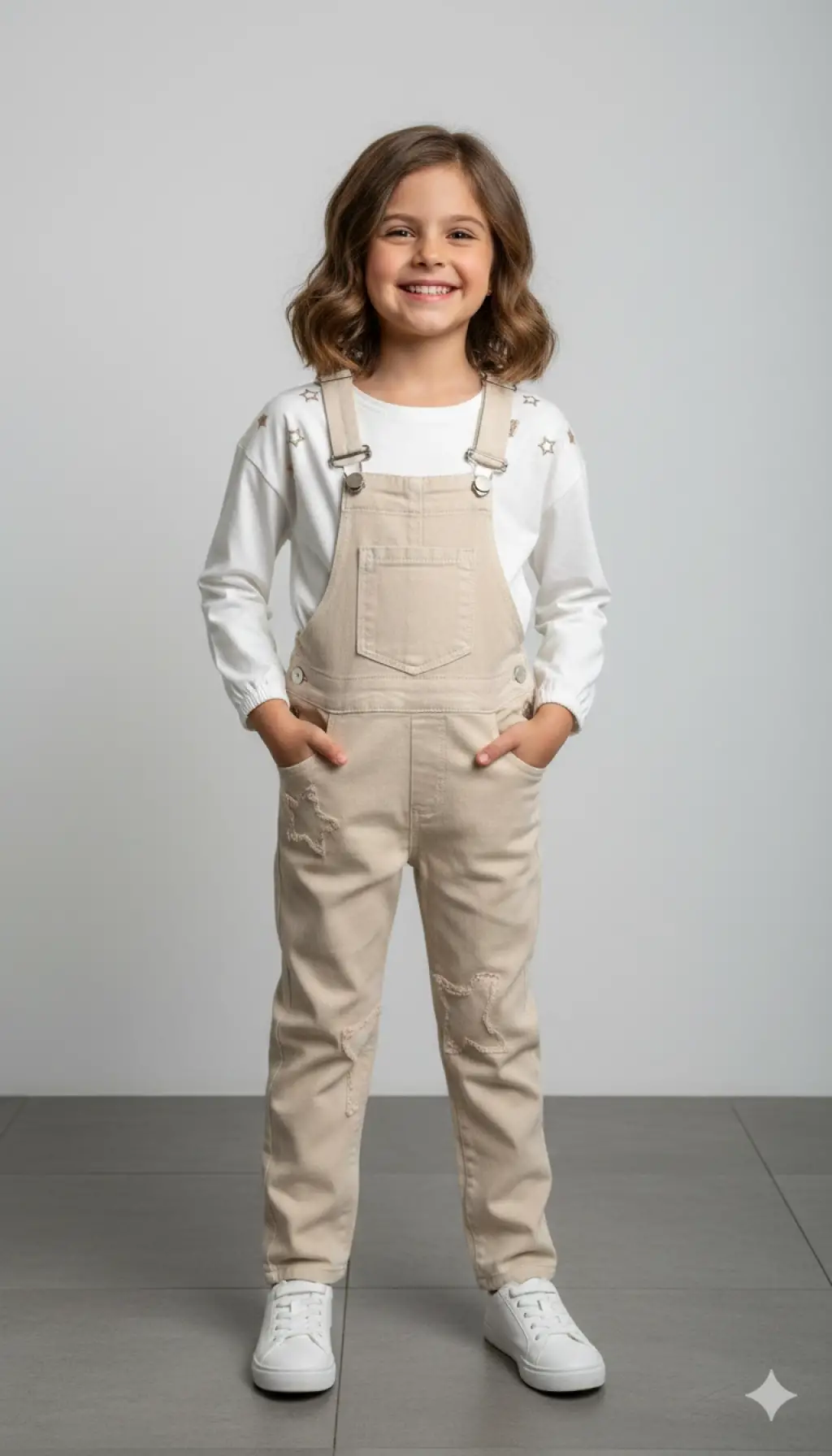 6-9 Yaş Krem Yıldızlı Badili Kot Tulum