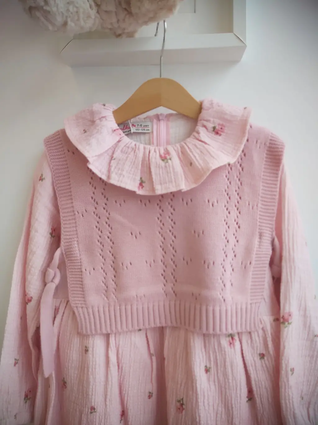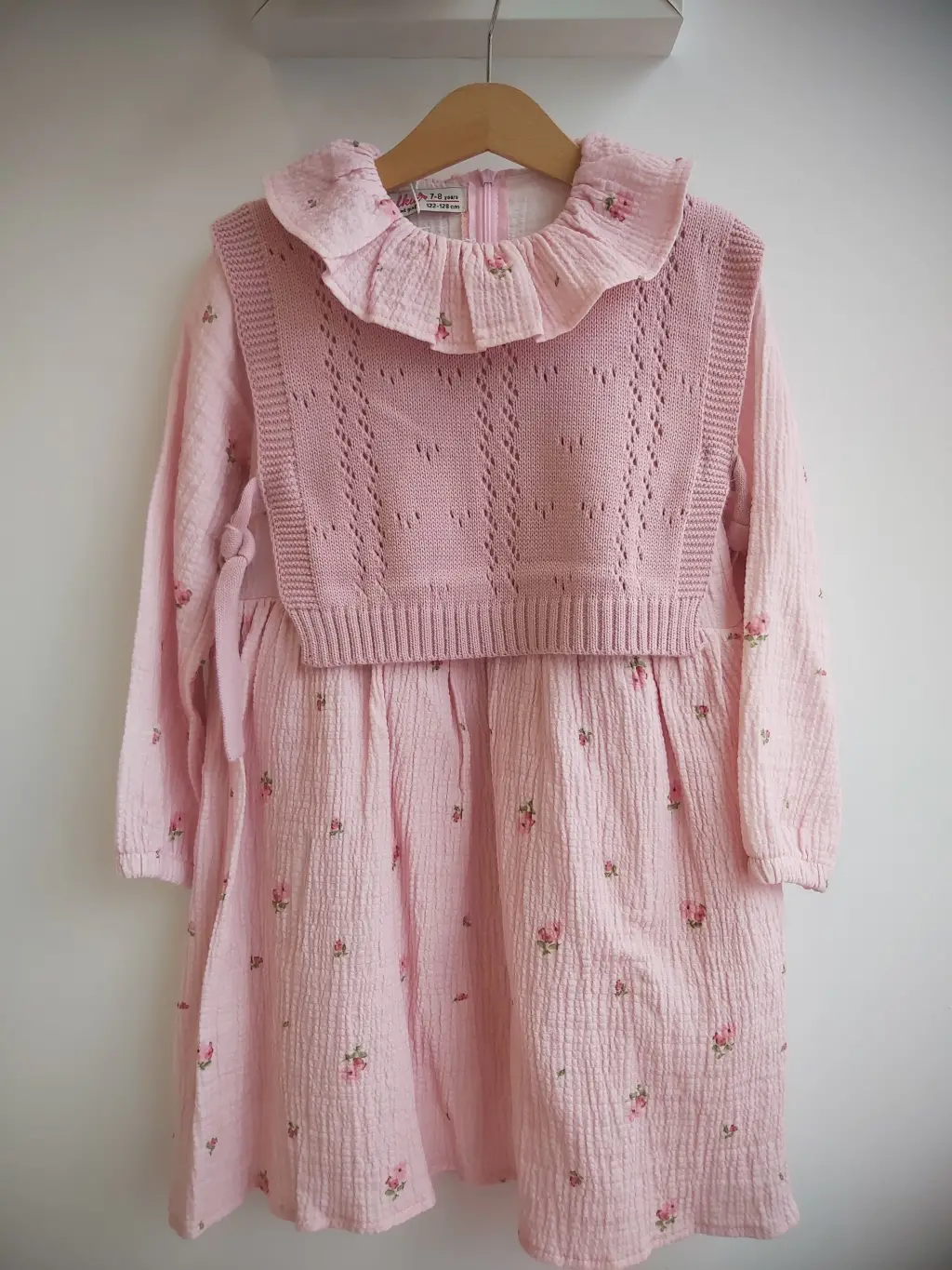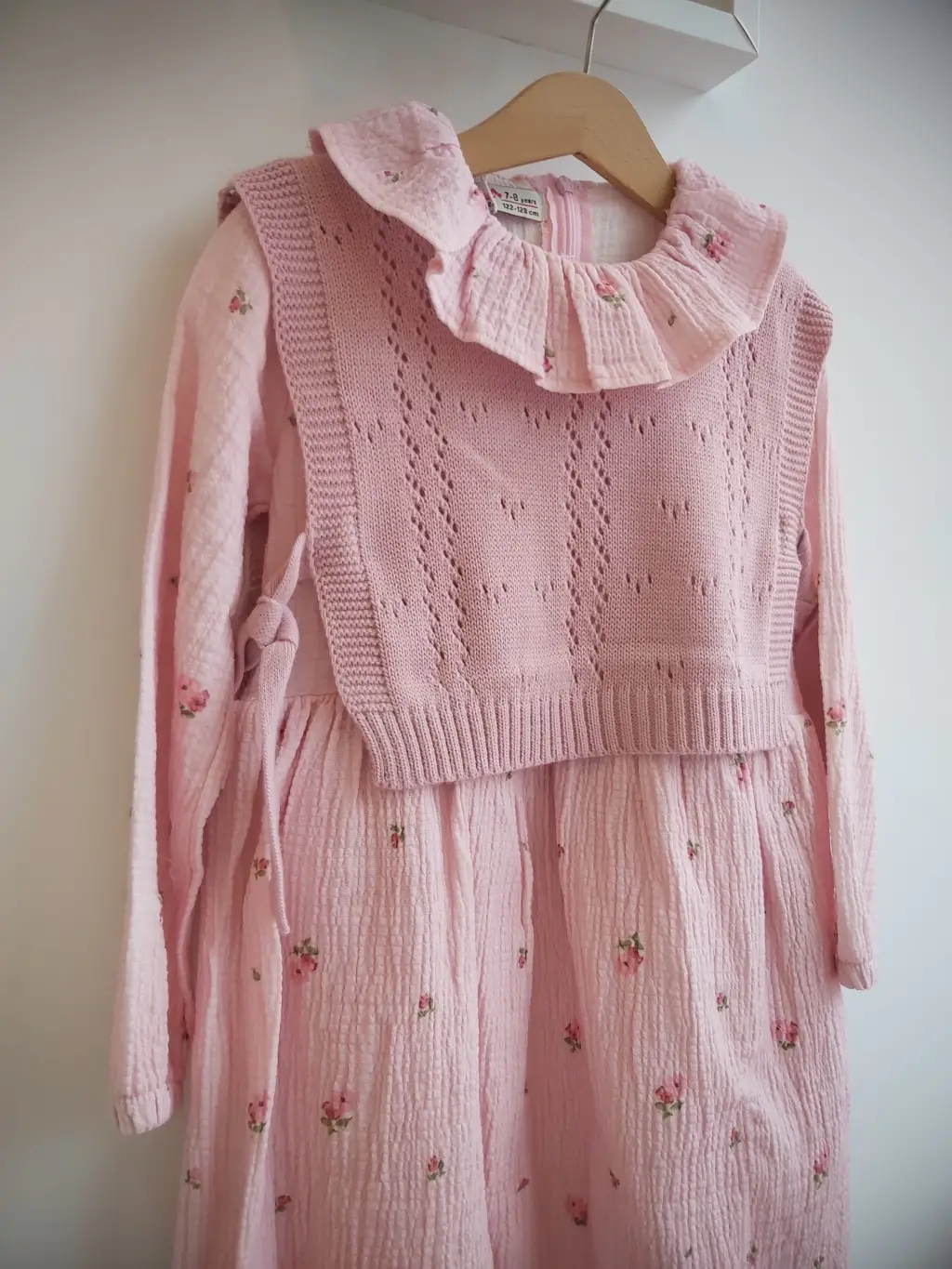 7-10 Yaş Pembe Fırfırlı Triko Süveterli Elbise