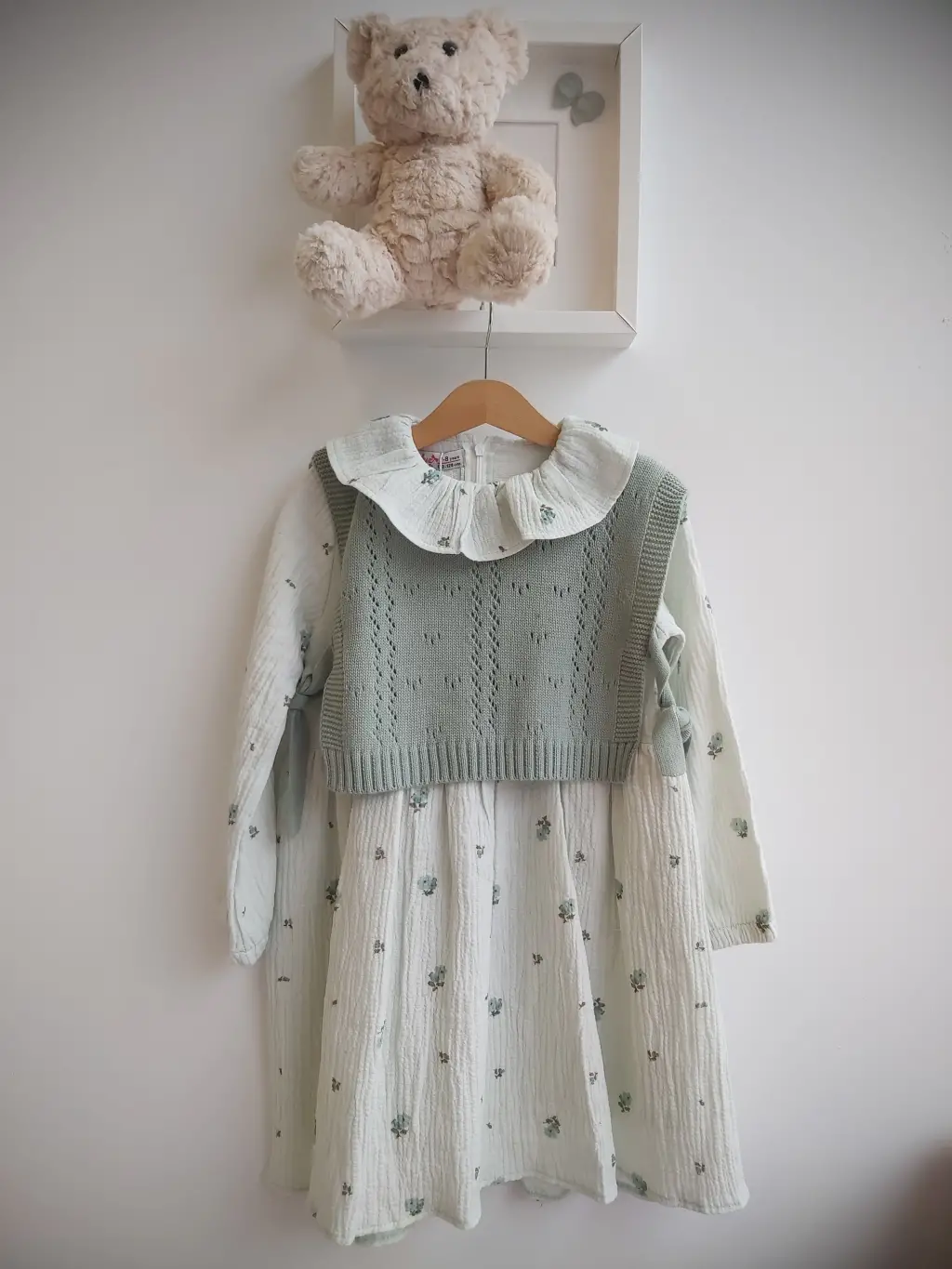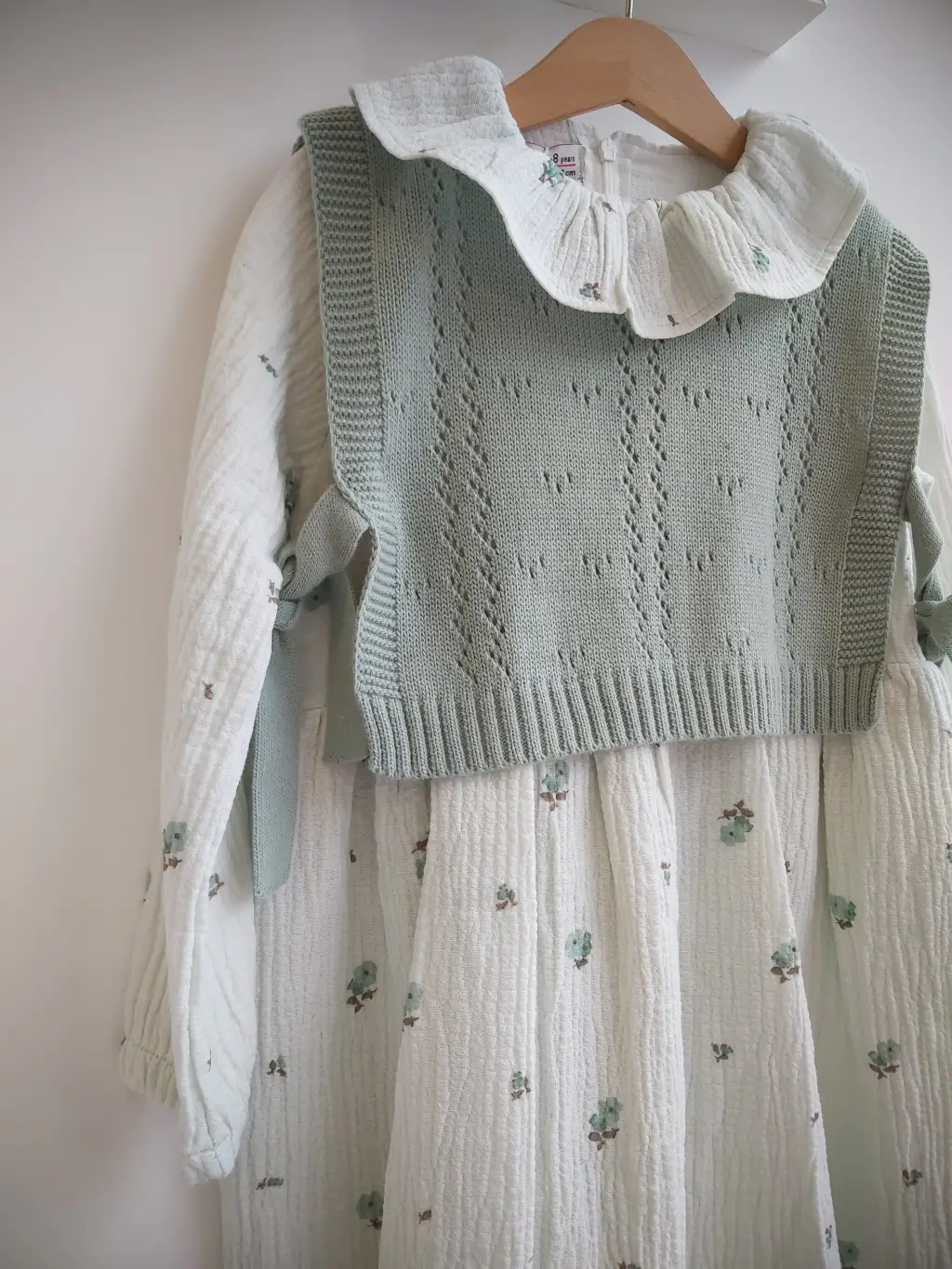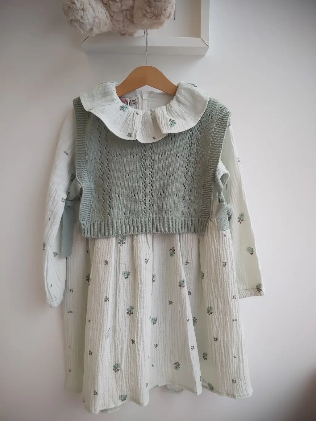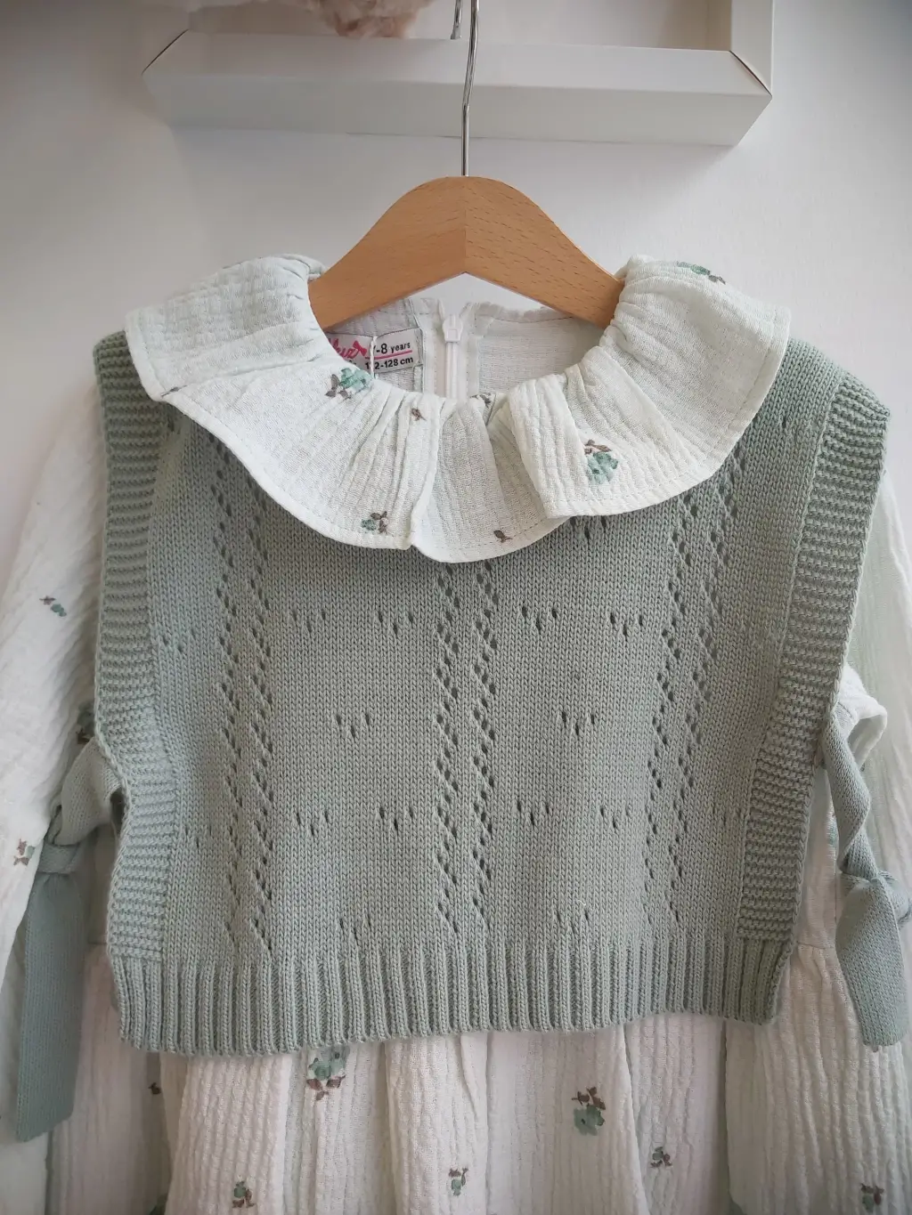 7-10 Yaş Yeşil Fırfırlı Triko Süveterli Elbise
