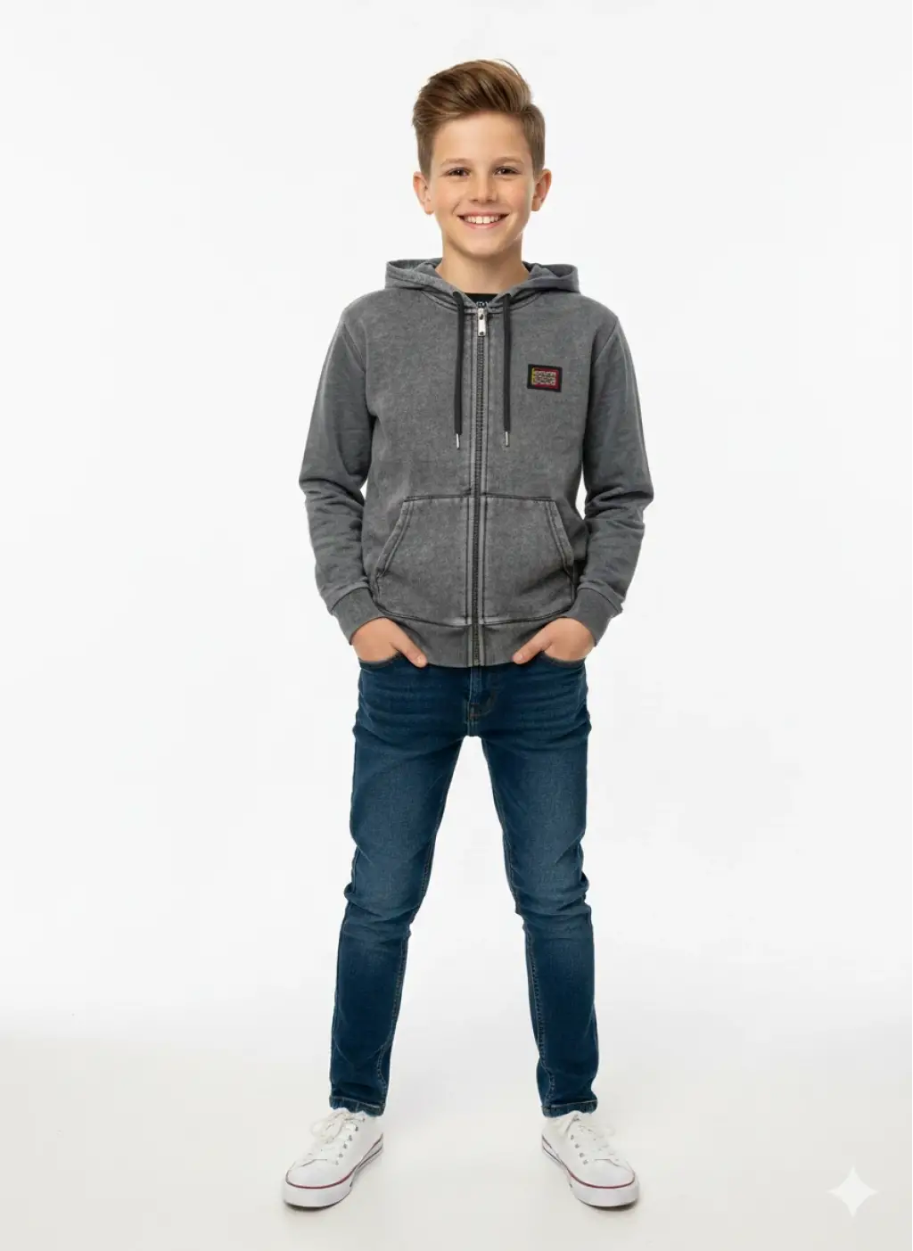 • 8-16 Yaş Antrasit Eskitme Şardonlu Hırka