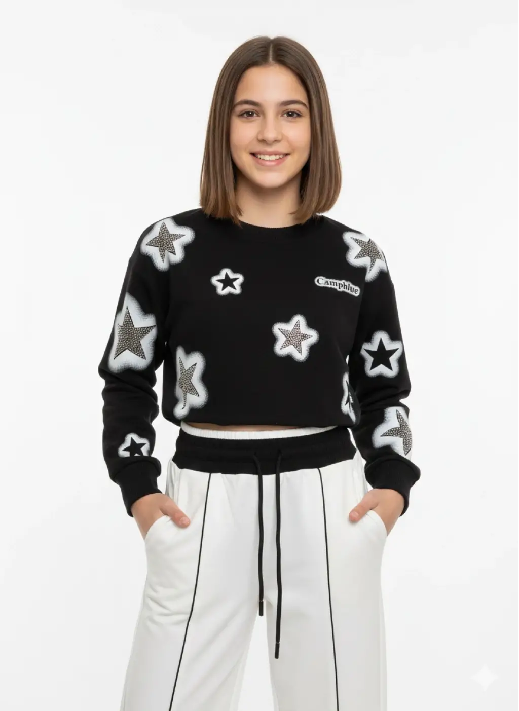 8-16 Yaş Siyah Beyaz Yıldızlı Eşofman Takımı