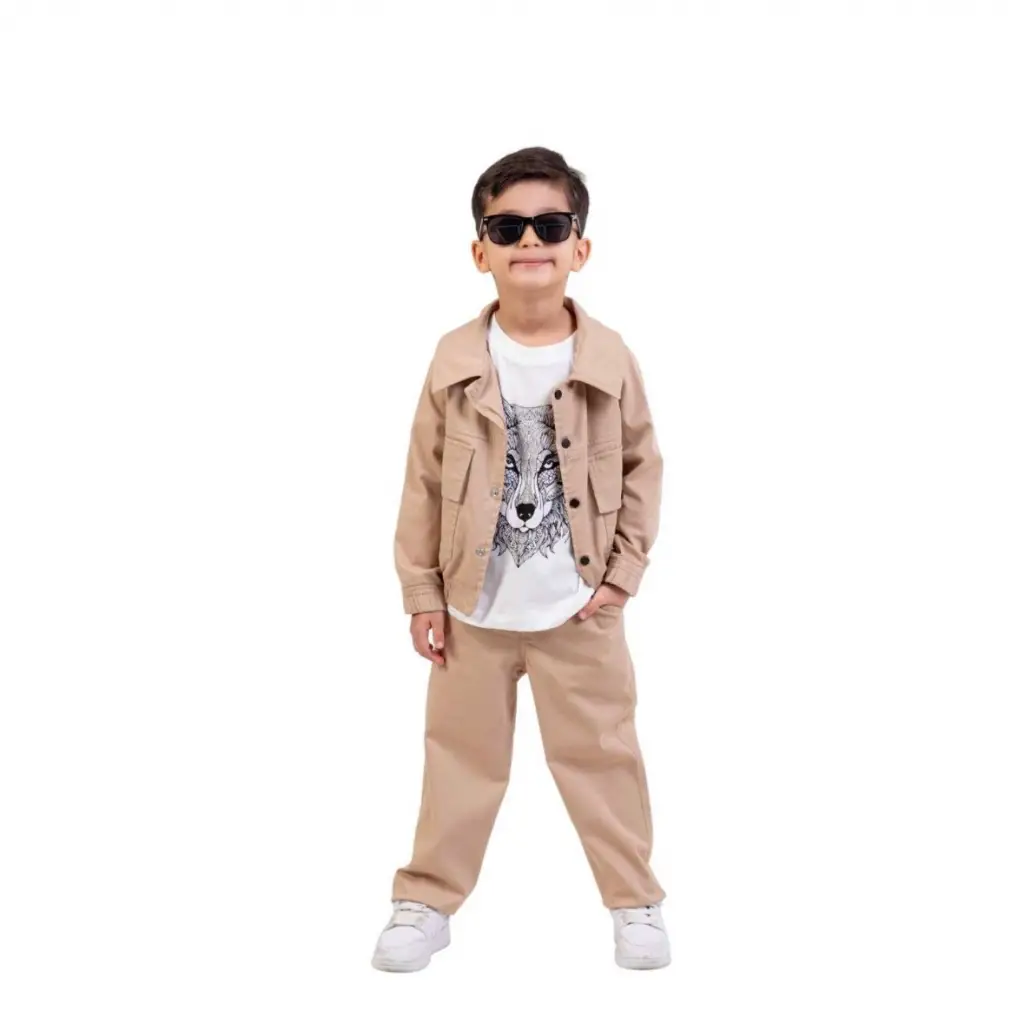 9-13 Yaş Bej Kurt Baskılı 3lü Takım