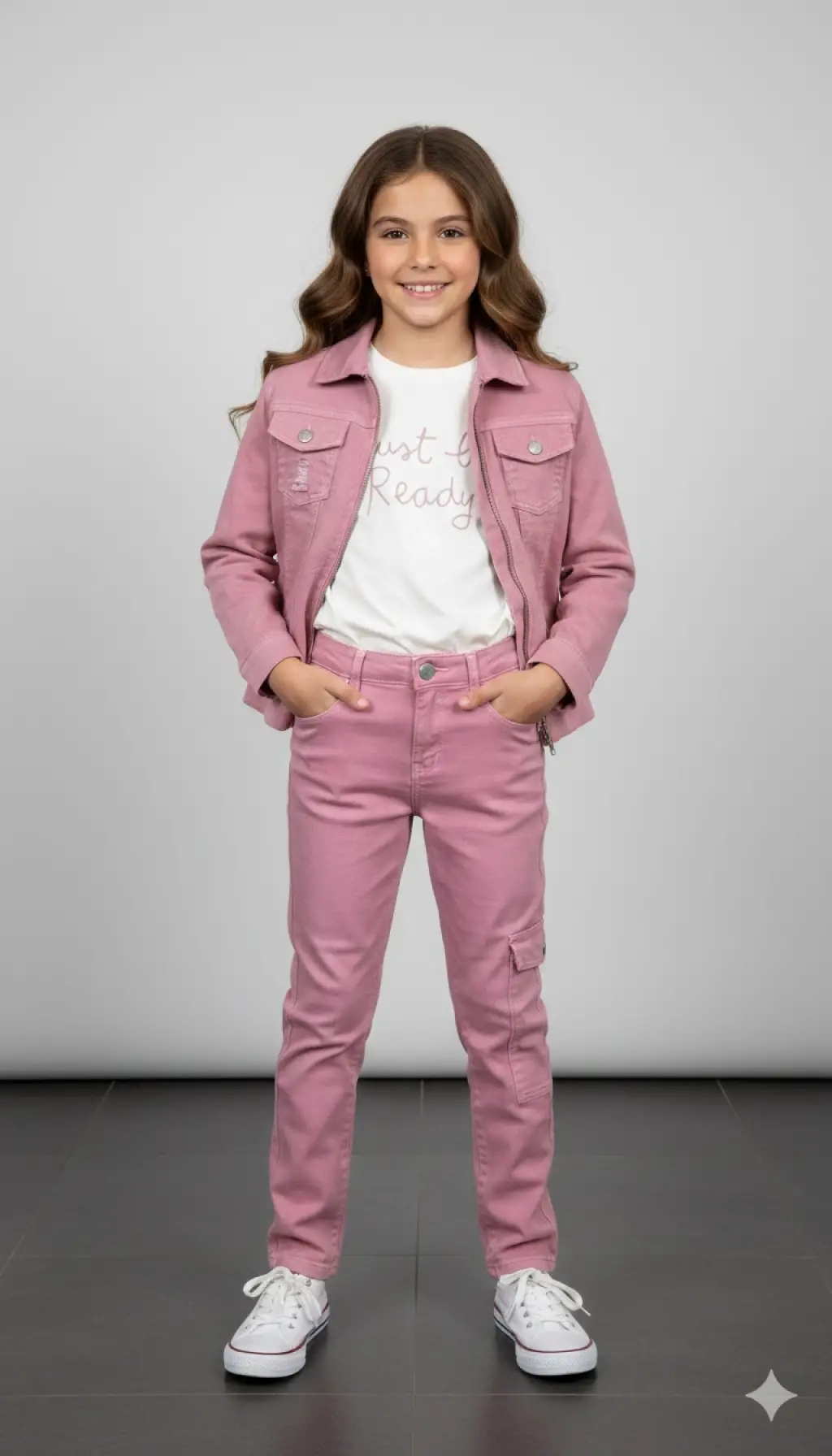 9-14 Yaş Pembe Cep Detaylı 3lü Takım