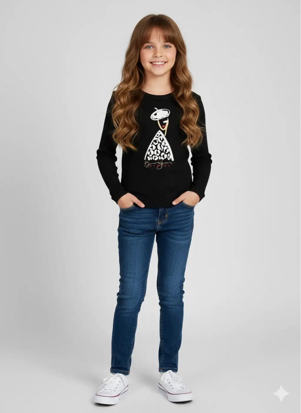 9-14 Yaş Siyah Leopar Detaylı Bluz