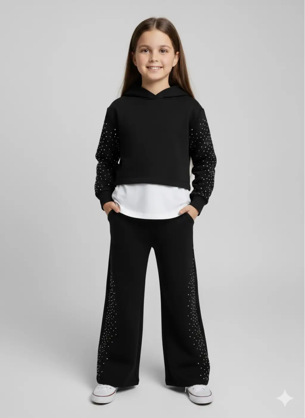 9-14 Yaş Siyah Taşlı 3lü Takım