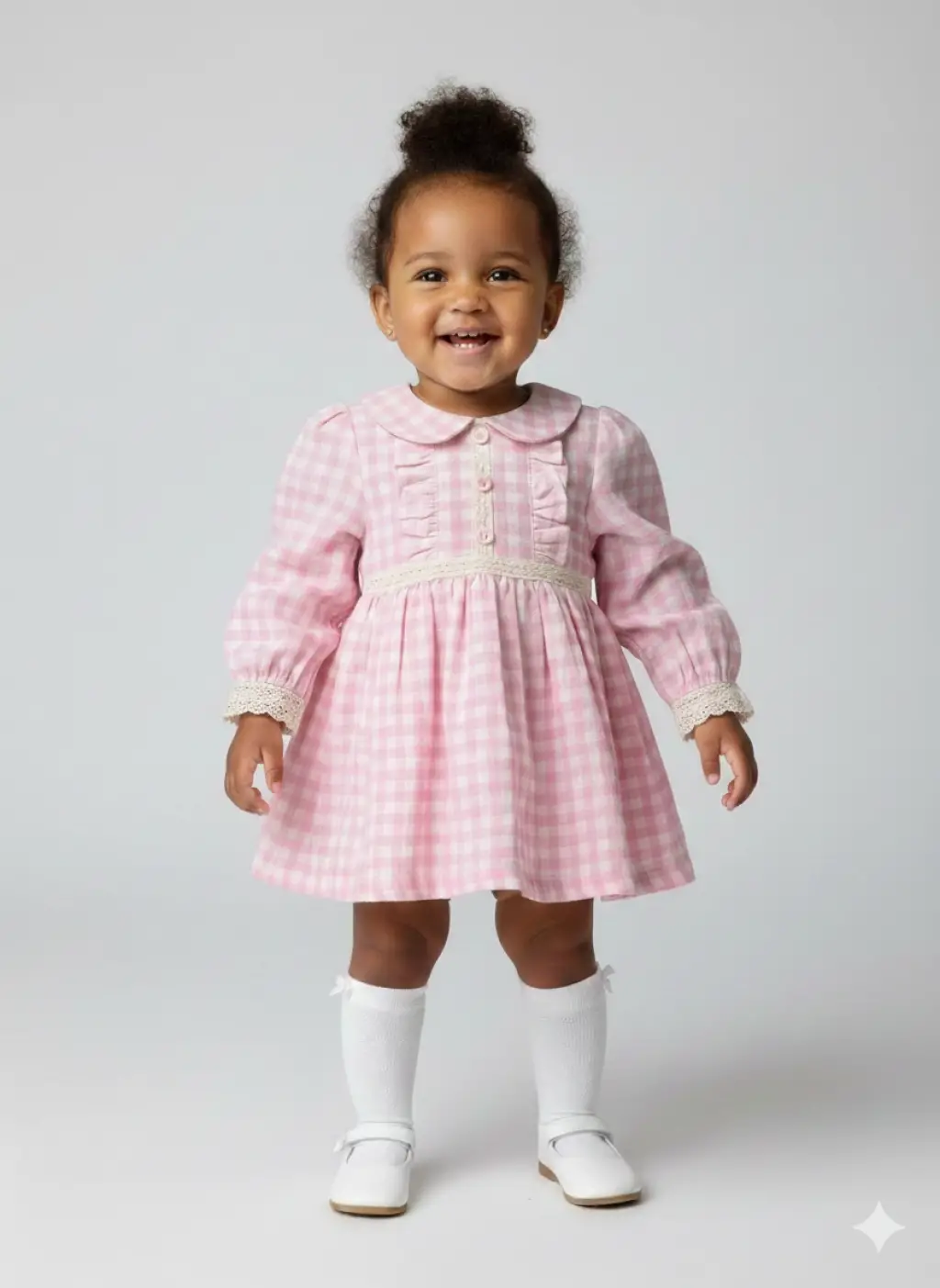 9-24 Ay Ekose Desenli Pembe Elbise